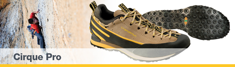 Want de Cirque Pro heeft echt wel veel te bieden. Een uiterst stijve en grippy zool, die dankzij zijn vormgeving toch uitstekend afrolt, een zalig vetersysteem en vooral een grote rubberen stootrand. Al dit maakt hem de perfecte schoen voor approaches over morenes of puinhellingen.