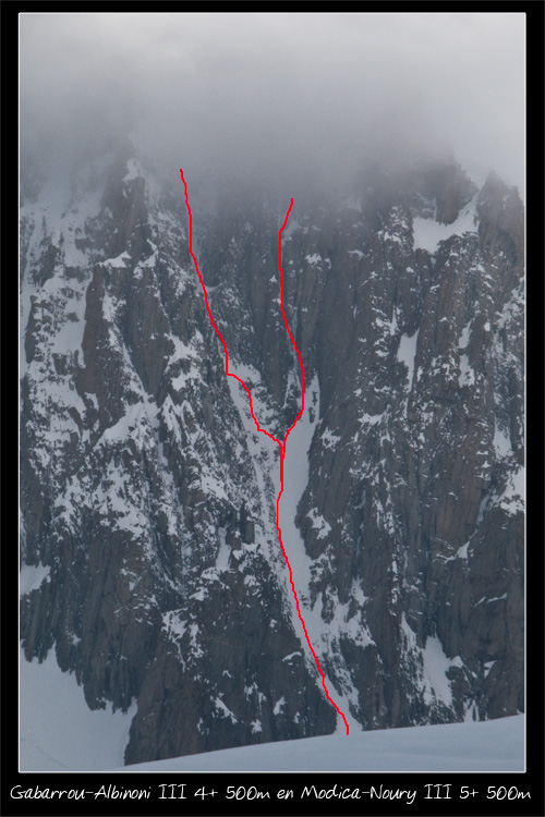 Ps: Op hetzelfde moment beklommen Sanne en An L suucesvol Gabarrou-Albinoni in een snelle tijd, opgejaagd door het vele ijs dat andere klimmers naar beneden keilden…