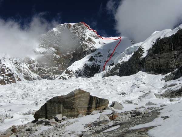 De eerste grote nieuwe beklimming van het seizoen is al een feit in de cordillera blanca in Peru. Een corde heeft daar een nieuwe lijn geopend op de Noord-west flank van Huascaran Noord. Met 80°stijl ijs en tot 6a rotsklimmen blijkt dit toch wel een stevige route te zijn. bovendien was er geen terugtocht meer mogelijk na 1/3 van de wand en brachten ze er 6 dagen door…