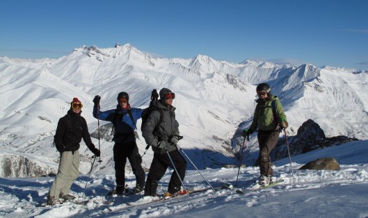 Helaas besloten de weergoden de nulgraden grens richting 2500m te trekken, net de nacht dat wij aankwamen…Regen?!? Wat ben je daar nu mee in een skigebied? Toen we ’s morgens aankwamen was Serre Chevalier het toverwoord. In La Grave was geen vlok te bekennen die niet platgeregend was, maar we hoorden goede verhalen van aan de overzijde van de pas. Aangekomen in Monetiers-Les-Bains (meest intressante stukje Serre Chevalier) bleek het al snel dat we ook hier tot helemaal boven moesten om nog wat verse sneeuw onder de skis te krijgen. Het zicht was nog best ok en ook het skiniveau van iedereen bleek goed mee te vallen. Aleen lawinegevaar 4 (veel verse sneeuw, snelle temperatuurstijging, veel wind, veel spontane lawines, … Do I need to say more?) gooide wat roet in het eten.
