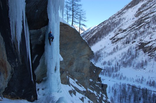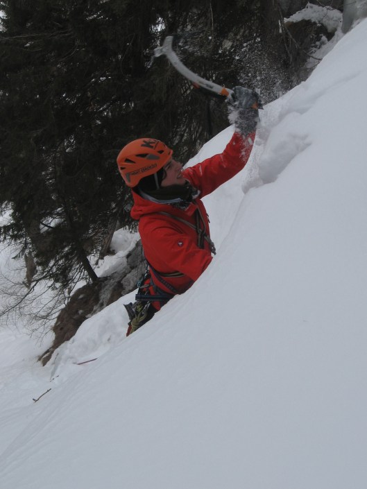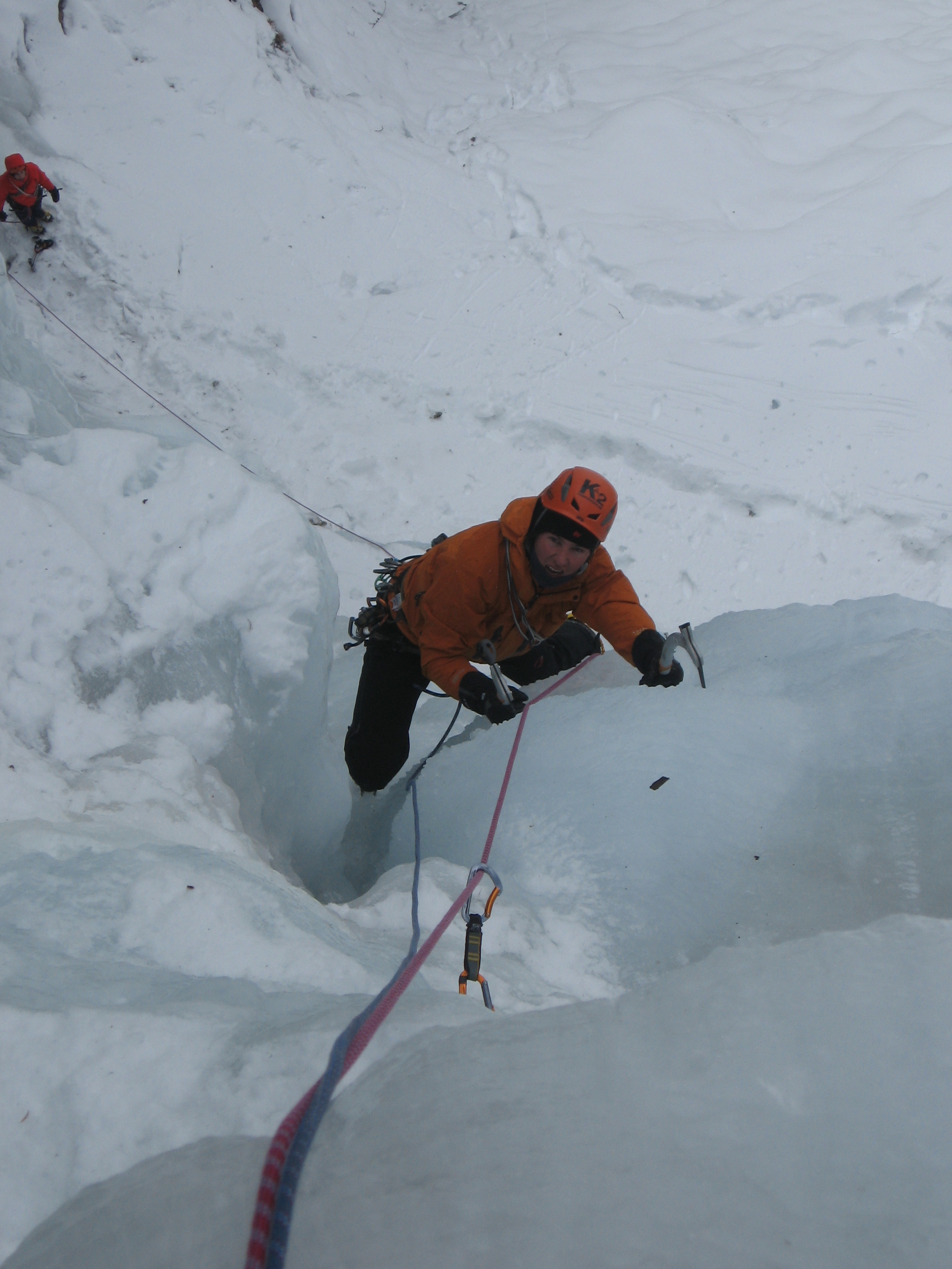 met een ijsbijl of zelfs zonder. Best wel goed om wat aan de voettechniek te werken.