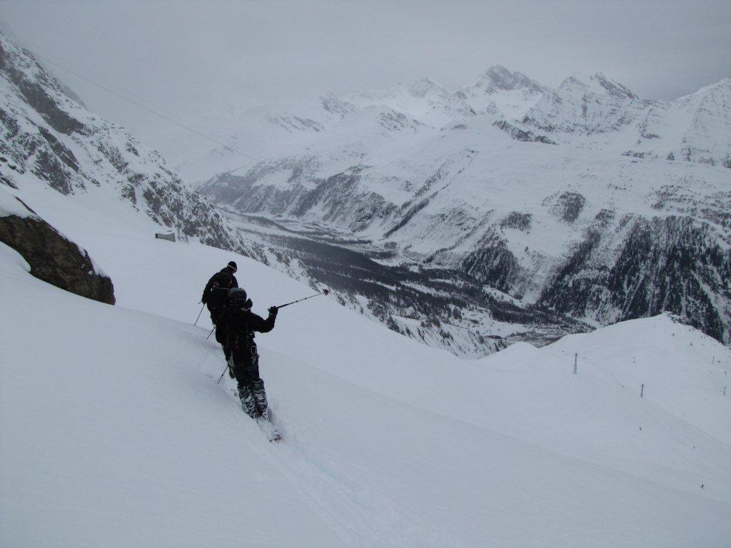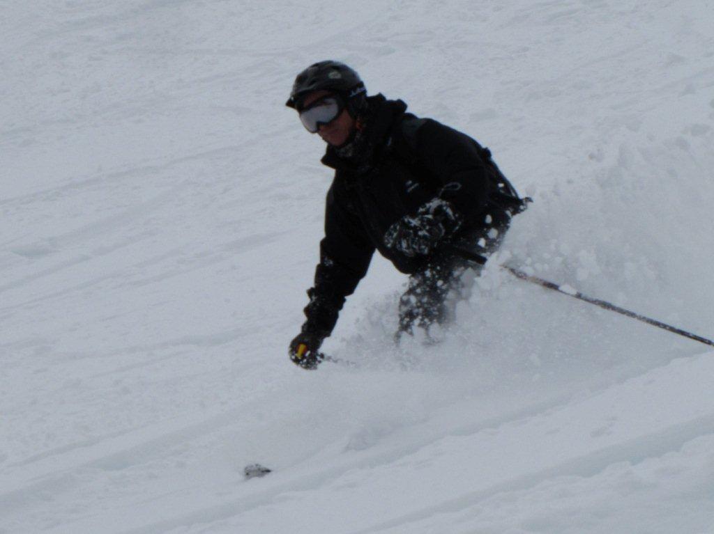 Sinds afgelopen vrijdag ben ik met het werk op winter training in La Thuile, Italiaanse alpen. Normaal zijn de sneeuwcondities in dit jaargetijde allesbehalve winters en is het overal papsneeuw of betonharde firn. Maar een nog steeds aanhoudende winterprik zorgt nu al vijf dagen voor onafgebroken diepsneeuwplezier. Zaterdag poederen in het leuke en bosrijke domein van La Thuile, zondag na een dumpje van 30cm en een lawinegraad 4 van het zelfde, afgerond met een kleine skitour en maandag een topdag freeriden vanuit Helbronner. Dat is de lift die naar 3500m gaat aan de Italiaanse kant van de Mont blanc. Enkel de slechte zichtbaarheid maakt het allemaal wat moeilijker, maar wat een diepsneeuw!