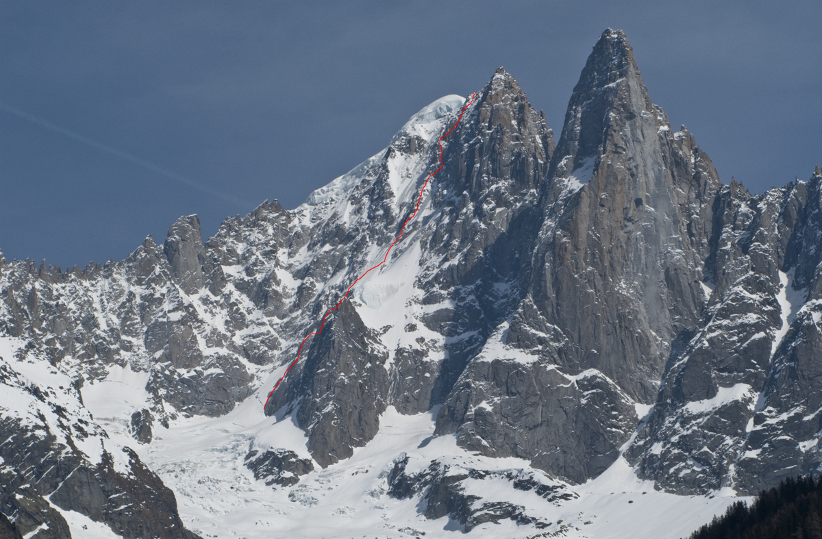 Ons plan was de Engelse Route op de Noordwand van Verte/Aiguile Sans Nom (1000m V 5, ED1 ). Onze route liep uiteindelijk een beetje anders maar ik kan je al wel vertellen dat we boven zijn geraakt.