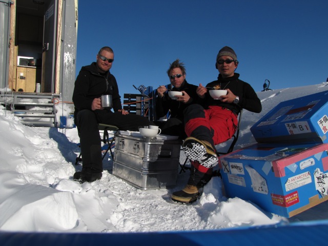 Na de warme douche en de maintenance, gaat het werk al onmiddellijk door met het voorbereiden van de traverse naar Crown Bay, opnieuw aan de kust, waar tegen kerstmis het schip, de Mary Arctica ontladen wordt. Gelukkig hebben ze mij daarbij even niet nodig, zodat ik mijn volgende expeditie een beetje beter kan voorbereiden. Rond 28 december vertrek ik met een team van 4 wetenschappers naar het ijsplateau op 3000m, ten zuiden van het Sor Rondane gebergte. Een plaats waar, als het warm is, de temperatuur -20° bedraagt en waarvan zelfs AH zegt dat het er erg koud is. Hier zullen we een dikke drie weken doorbrengen, op zoek naar meteorieten en buitenaards leven. De afgelopen dagen heb ik Field training gegeven aan de nieuwe groep wetenschappers en tussendoor een paar leuke ski-afdalingen kunnen realiseren. Meer daarover binnenkort.