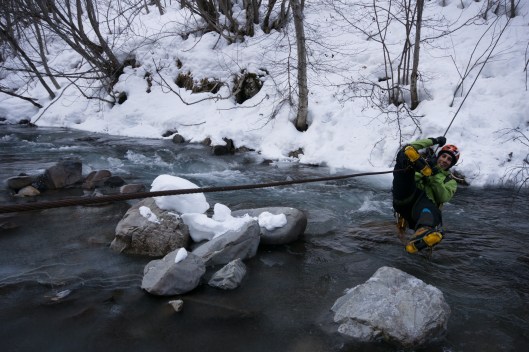 Via men werk kreeg ik een lift tot in een duister Noord-Frans stadje vanwaar ik met de trein kon doorreizen tot in het hart van de Franse Zuidalpen. Voor de 2de maal deze winter was ik te gast bij Rogier en Sandra in Argentière-La-Bessée. Zij zijn ook fervente adepten van het “we -zien-wel-waar-de-condities-ons-heenbrengen” concept en zagen er geen graten in dat ik enkele dagen langskwam. De Zuidalpen hadden helaas wel al een tijdje af te rekenen met een acuut gebrek van verse sneeuw en (te) hoge temperaturen. Gelukkig lagen er nog wel enkele watervallen in conditie en konden we ons de eerste dag opwarmen in “Fracastorus”.