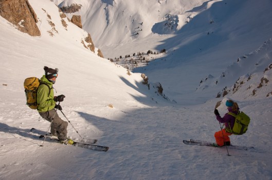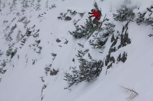 In het weekend besloten we een toertje te maken naar de ‘Marcous’ Een duizendtal meter naar boven om een couloirtje te skieen aan de achterkant om dan weer 200 meter te stijgen en af te dalen via het stijgspoor. Sounds like a plan! We vorderden snel op de aangevroren firn en vonden zelf wat poeder in het couloir.