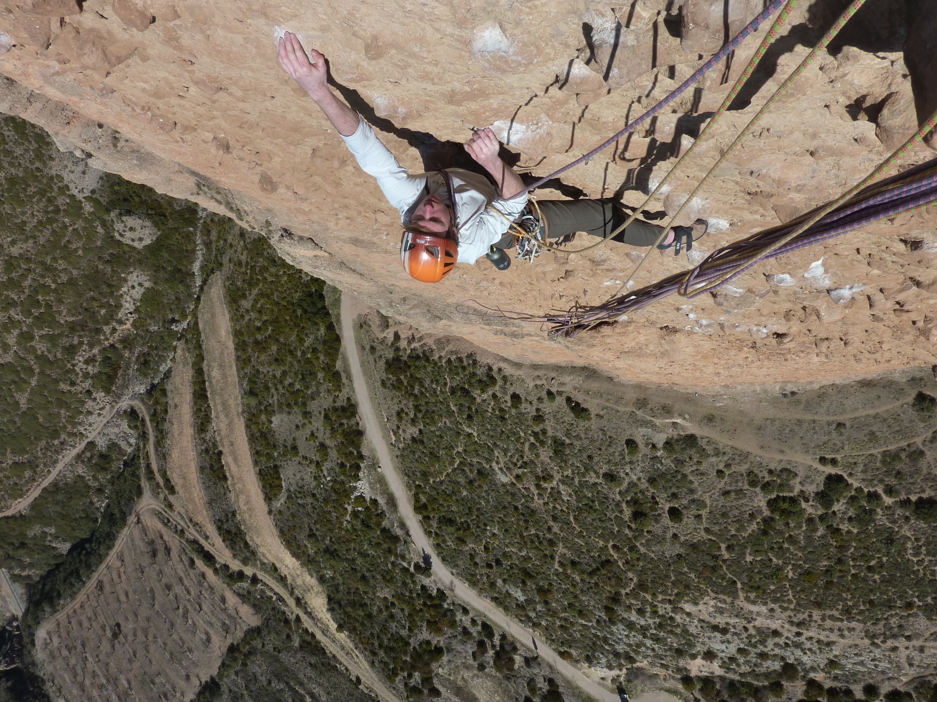Ondertussen heb ik(Tim De Dobbeleer) de winter in de Alpen even achter mij gelaten. Het was hoog tijd om wat vitamine D te gaan sprokkelen. En nergens is die zo talrijk als hier in Spanje. Ik heb hier afgesproken met Pieterjan De Roo, hij woont ondertussen al meer dan 5 jaar in Barcelona en kent de omgeving van Catalunya en Aragon als geen ander. Een sportklimstop van 3 dagen in Siurana en Margalef was nodig om de overgang van ijs naar Multipitch rots iets minder abrupt te laten verlopen. Naast sportklimmen was Siurana ook de perfecte plek om climbing celebreties te spotten, en dan vooral vrouwen….Alizée dufraisse, Sacha Digulian, Nina Caprez allemaal waren ze op de secteur El Pati harde routes aan het knallen en dat zorgde voor spektakel.