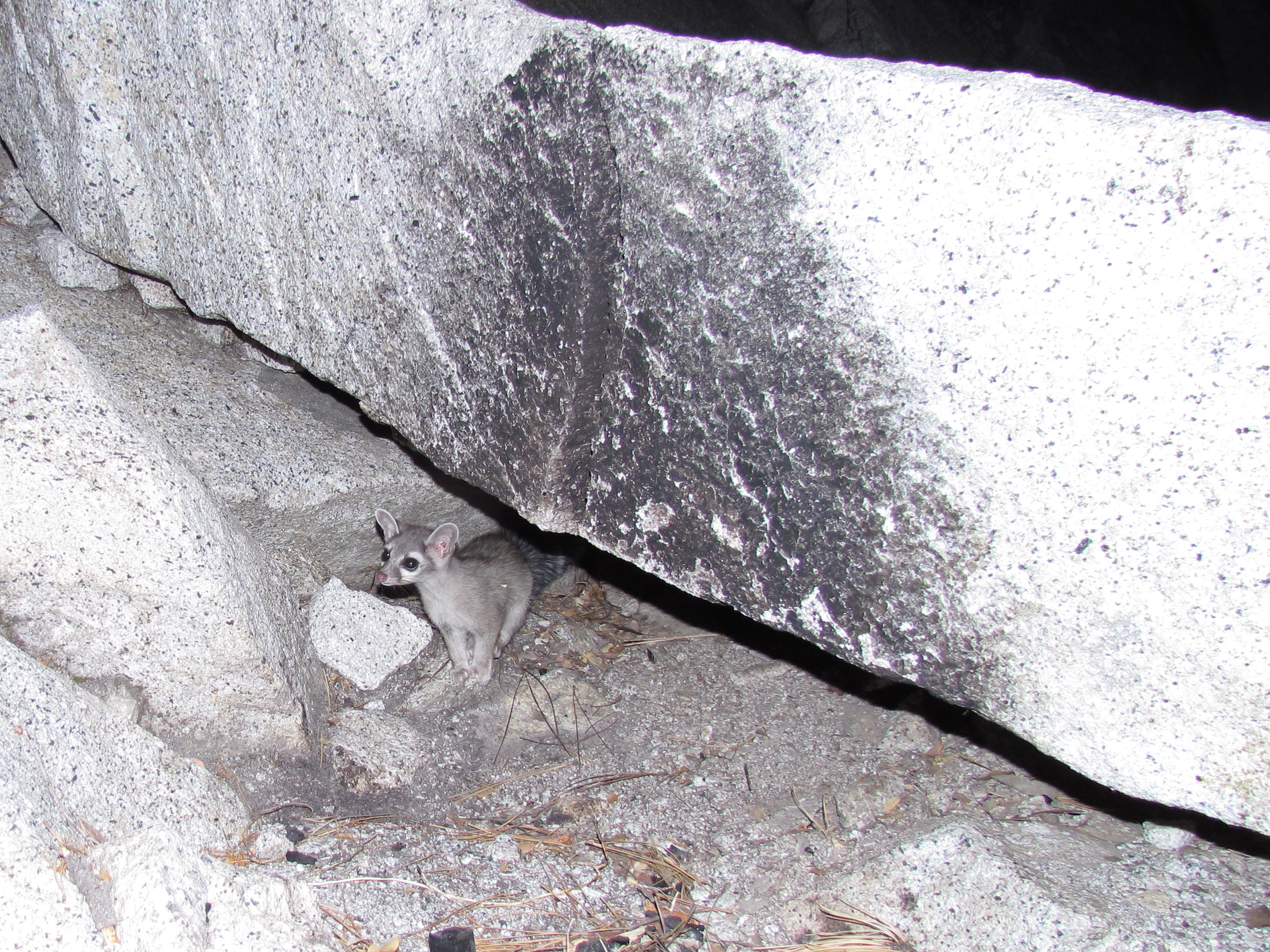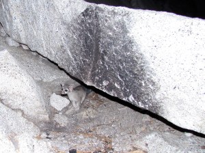 Je zou denken dat er op 500m boven de grond, in een uiterst steile granieten wand geen viervoeters meer kunnen leven, maar dat was buiten een “wallrat” gerekend! Ongelofelijk dat die hier op die richel kan komen en overleven. Vastbesloten om die dag uit te klimmen, beginnen we vroeg aan de resterende 8 touwlengtes. Maar die zijn allesbehalve makkelijk, met nog enkele uitdagende passages. Door het toeval klim ik de technisch moeilijke artif-lengtes en Stijn de vrij te klimmen lengtes. De esthetisch prachtige barst van de 18e touwlengte (5.10c) wordt door Stijn vlekkeloos voorgeklommen. Voor een keer eindigen we de dag vòòr zonsondergang, op de top van Mt Watkins! Omdat het al laat is en de afdaling minstens vier uur in beslag zou nemen, besluiten we om op de top te bivakkeren. Mét een zalig kampvuur, eat your heart out, rangers!