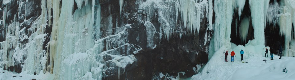 Zaterdag wordt het een namiddag in een kleiner ijsklimgebied. Zondag stuurt Eivind me met een vrij onervaren Molly (amper haar derde keer ijsklimmen) richting Grøtenutbekken (WI5 – 250m). Hij verzekerd me ervan dat het een makkie wordt en dat er eigenlijk maar 1 lengte echte moeilijkheden zijn.