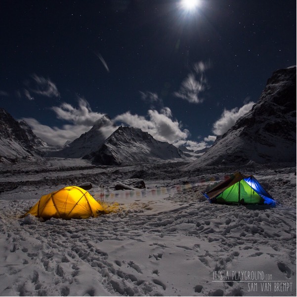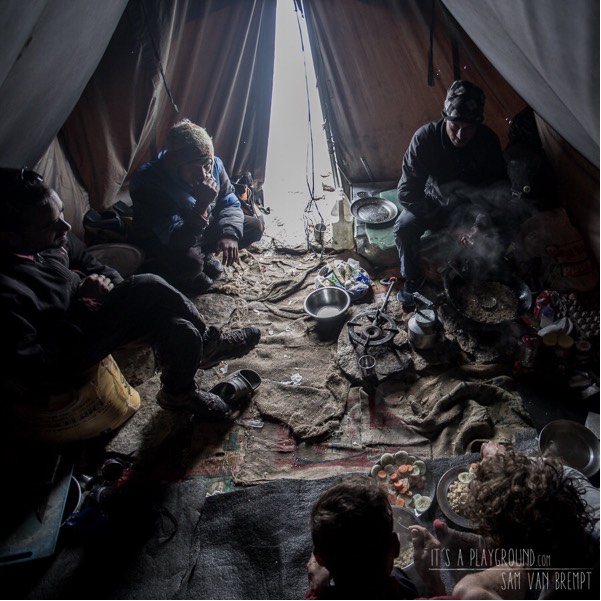 Unfortunately the mountains have provided us with a serious ammount of gray skies and subsequently we were confined to our tents for two days while snow puked from the firmament.