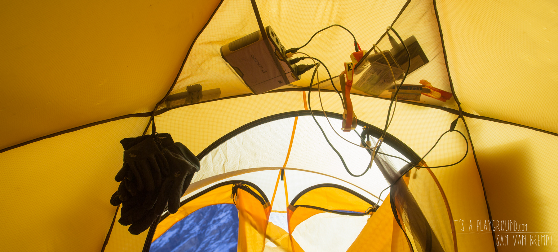 We had a violently windy night and Kivik is barely awake at breakfast. He hardly eats and once back in his tent it’s only at the third effort Sam receives the sat phone from him. Kivik offered him a power cord and the massive solar battery first. A bit worried about him being so confused and sick Sam and I decide to let him rest for a day and catch up on some sleep.