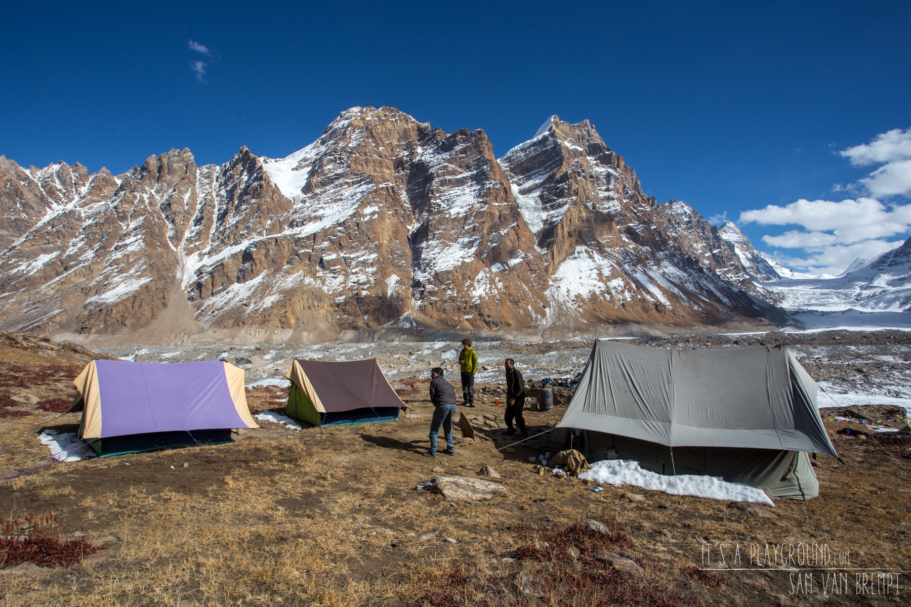 Despite the heat that struck the Himalaya’s last summer, temperatures weren’t mounting around BC or the surrounding mountains. Our liaison officer had promised us the snow would melt away within days, but a week has gone and I’m still digging trenches between the tents and our hole-in-the-ground toilet.