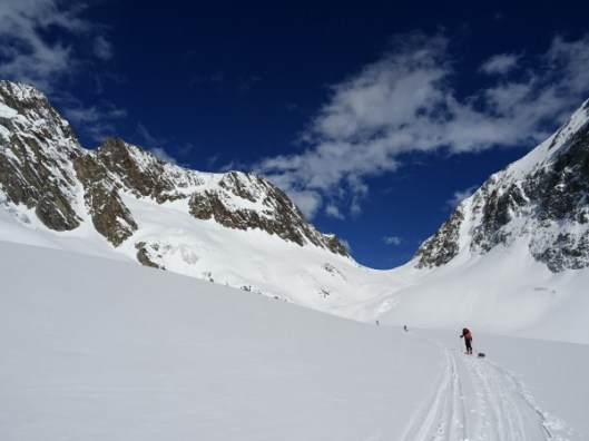 Met onze pulka’s op weg naar de Hollandiahütte.