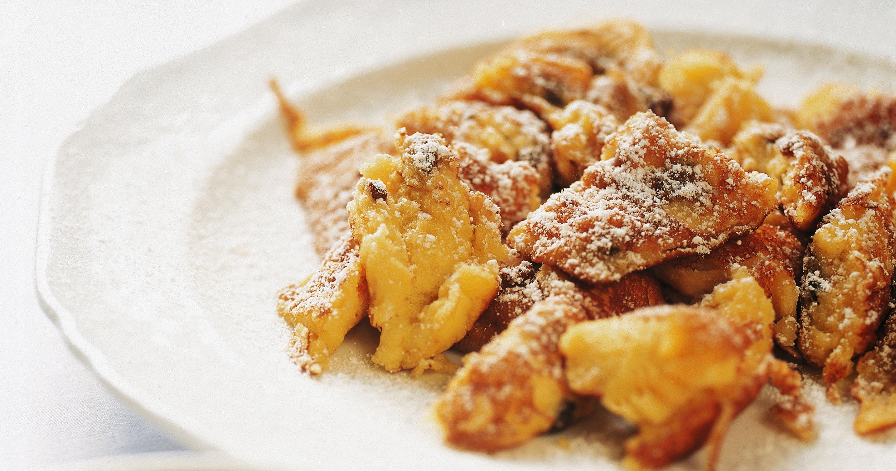 Eerst en vooral misschien een kleine introductie voor zij die het Oostenrijkse godsgeschenk nog niet kennen. Kaiserschmarren is het bekendste Oostenrijkse nagerecht. Het is een gekaramelliseerde dikke pannenkoek, die in grove stukken wordt gesneden en traditioneel wordt geserveerd met appelmoes.