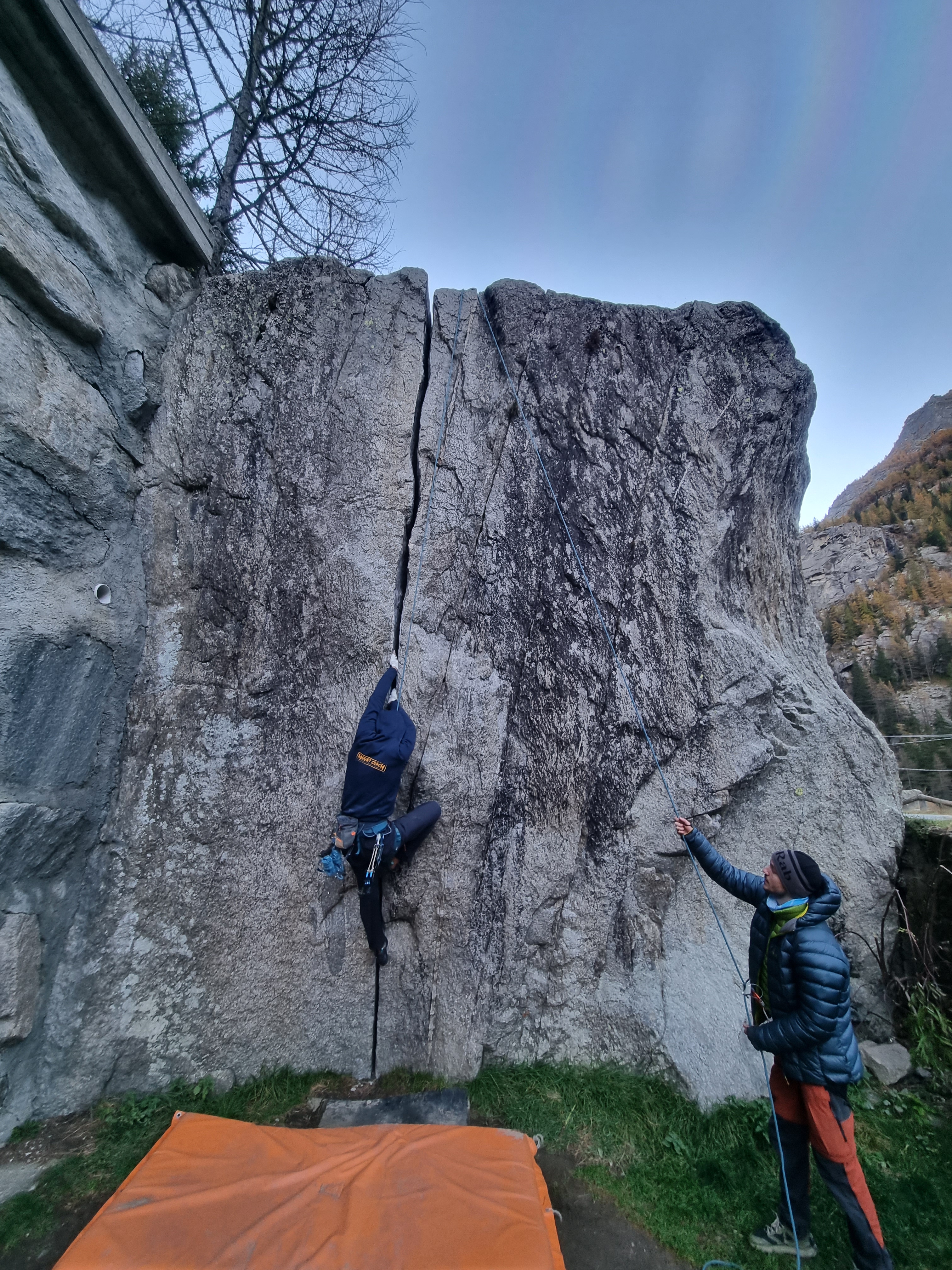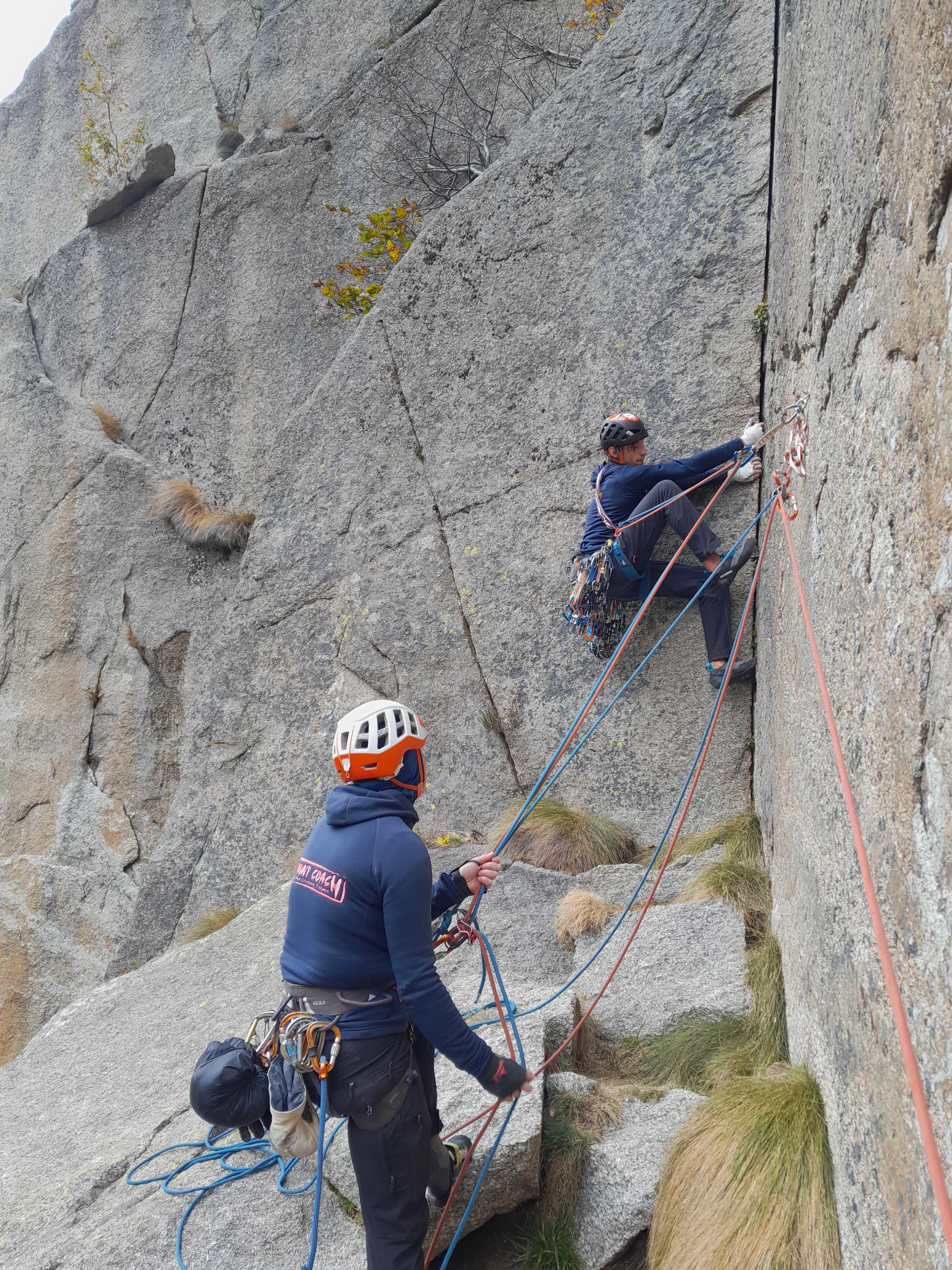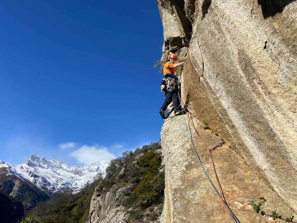 Begin november trok Mount Coach 10 richting Valle d’ell Orco voor hun kennismaking met het ‘traditioneel klimmen’ of ‘avontuurlijk klimmen’. Dat is klimmen op niet-geëquipeerde rotsen, waardoor je jezelf en je klimpartners moet beveiligen met zelfgeplaatste, mobiele tussenzekeringen en standplaatsen; vaak rotsterrein vol met barsten. De Orcovallei dankt haar naam aan de Orcorivier die met veel kabaal doorheen het landschap stroomt en dat zo vormgeeft. De rivier voedt het lager gelegen bos dat in november straalt van de herfstkleuren, wat samen met de besneeuwde bergtoppen een sprookjesachtige omgeving creëert om in te klimmen. Lees hier over de avonturen van MC10.