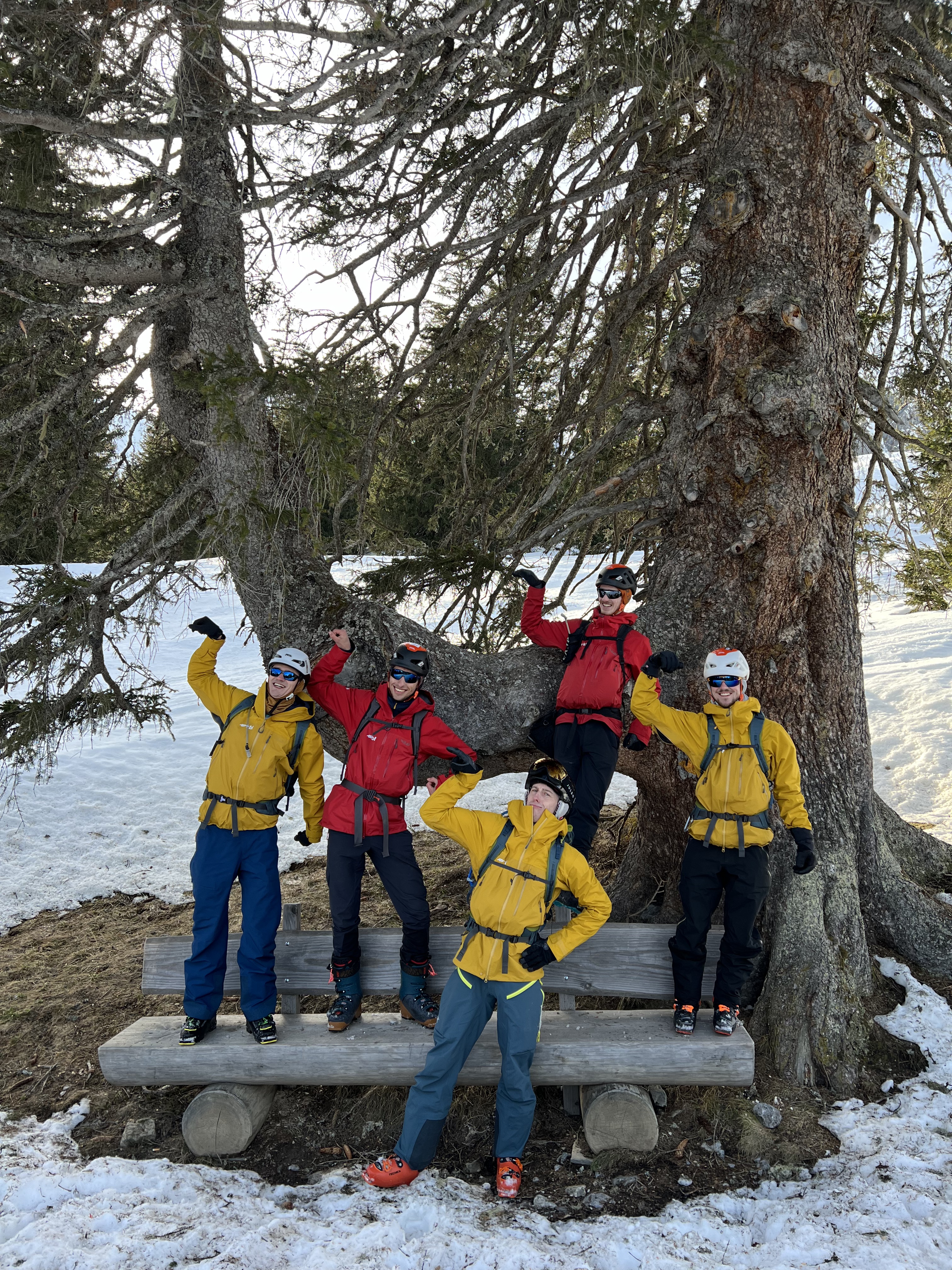 Na het afronden van onze laatste examens begon februari voor ons met de toerskistage in Zwitserland, gevolgd door de ijsklimstage in Noorwegen, met slechts drie dagen rust tussen deze twee intensieve weken. En als dat nog niet druk genoeg was, viel deze maand ook samen met Sannes 50ste verjaardag en bijhorend -feest, dat plaatsvond in Andermatt – een week met uitstekende freeride condities en zeker eentje om niet te vergeten. Terwijl Emma zich tijdens de voorbereidingsweek voor de toerskistage bezighield met het verbeteren van haar skitechniek, eindigde die week helaas met een knieblessure, waardoor ze niet kon deelnemen aan zowel de toerski- als ijsklimstages. Bij deze dan een boodschap aan aspirant-mount coachers en in het verlengde daarvan gedreven (berg)sporters: zorg dat je niet geblesseerd geraakt! Gelukkig heeft Emma op het moment van schrijven (bijna een jaar later) een mooie progressie gemaakt in haar revalidatie dankzij het nauwkeurig opvolgen van haar kinesitherapieregime. Chapeau Emma!