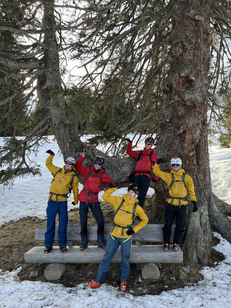 Onverwachts stonden we dus een dag vroeger terug aan de auto’s, en in Ristorante Ospizio klopten we af op het plan om nog een dag te gaan toeren in de vallei van Magic Wood, niet om te boulderen dus, maar om te toerskiën. De sportklimmers onder ons hadden duidelijk wel zin om te boulderen, maar we hielden ons aan de geplande activiteit. Dit concludeerde dan een erg gevarieerde en leerrijke toerskistage, eentje die startte met approachen met een klein hartje over gras en aarde richting de sneeuw, in lawinegevaarniveau 1, die ons dan liet kennismaken met ski-alpinisme en een meerdaags verblijf in een Winterraum waar we leerden dat kiezen om iets niet te doen ook de juiste beslissing is (lawineniveau 4 + de omgeving waar we waren), en dan kozen we op de laatste dag voor een minder steile tocht (aanvaardbaar met lawineniveau 4) en de sneeuw die toen met bakken uit de lucht viel, zorgde zo voor een heerlijk laatste dagje cruisen in de poeder, een waardige afsluiter waar iedereen bijzonder blij mee was. Dankjewel aan Sanne en An voor de top begeleiding, deze week gaan we niet snel vergeten!