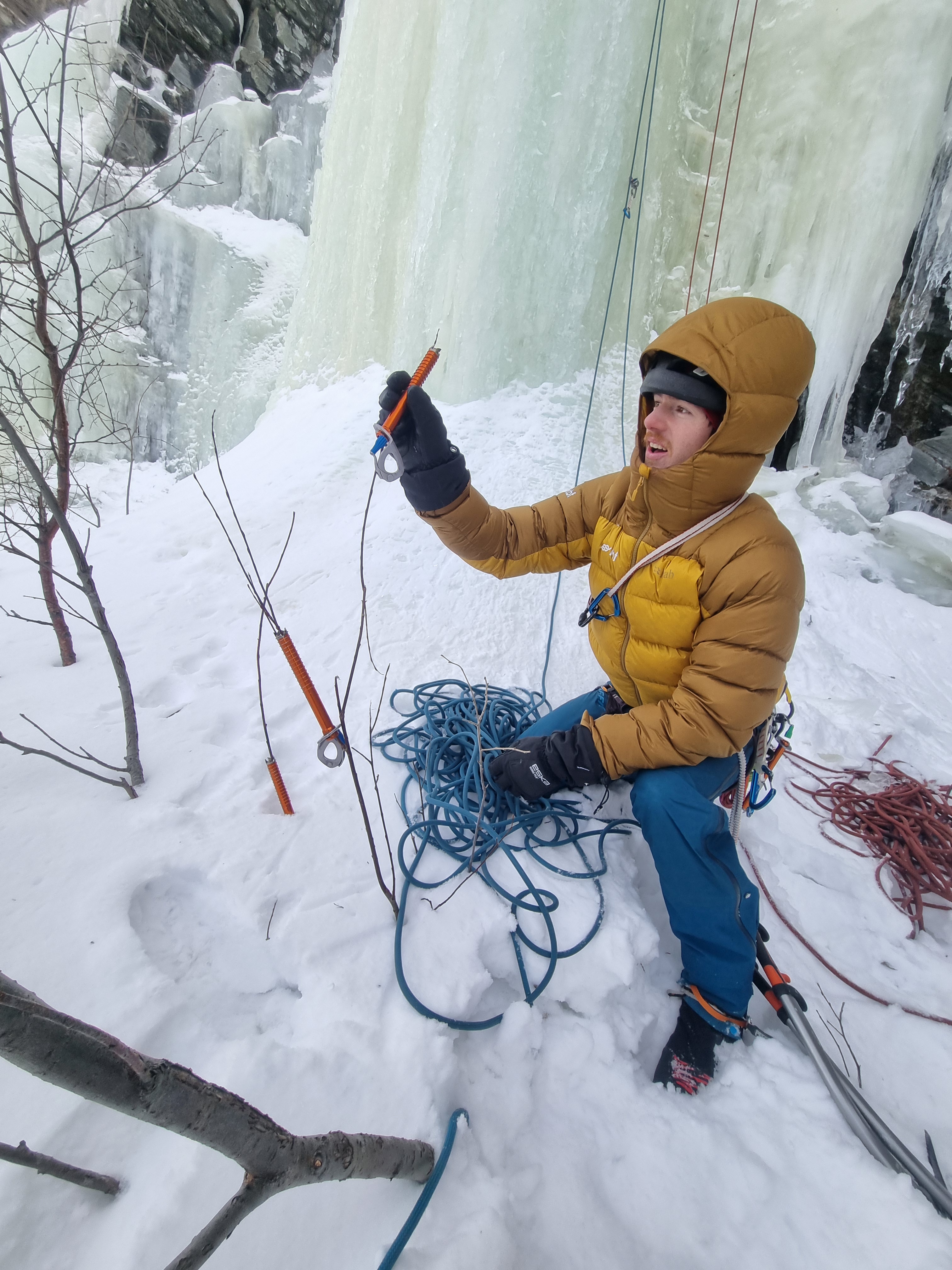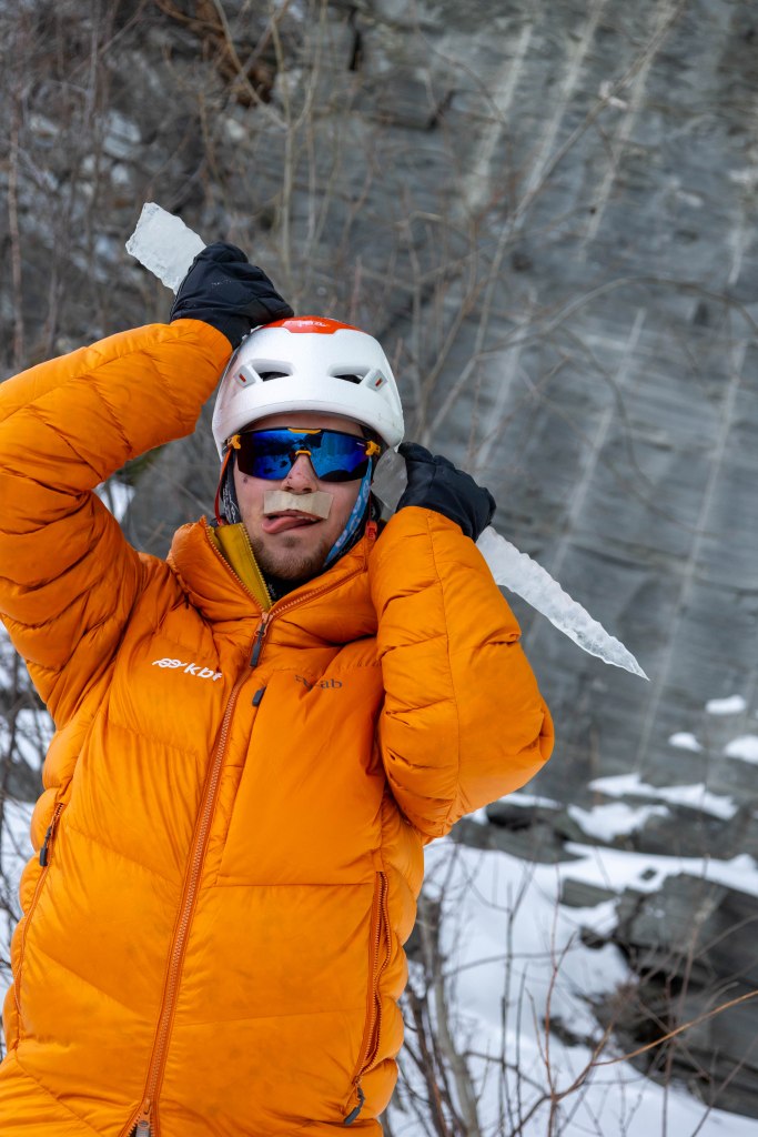 Vanaf de tweede dag stapten we over op voorklimmen, een volgende stap in onze ijsklimavonturen. Al snel merkten we het verschil in materiaal. Onze nieuwe Petzl-ijsvijzen gingen soepel door het ijs, in tegenstelling tot Sam’s oude en botte ijsvijzen. Dit leidde tot wat gefrustreerde uitroepen: “Sam, je ijsvijzen zijn bot, godverdomme!”. Een betere reclame om nieuwe ijsschroeven te kopen bestaat er niet dan een vloekende voorklimmer.