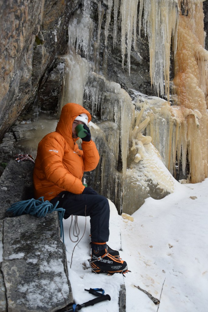 Kasper zijn nieuwe Klean Kanteen thermossen kwamen goed van pas tijdens de ijsklimstage