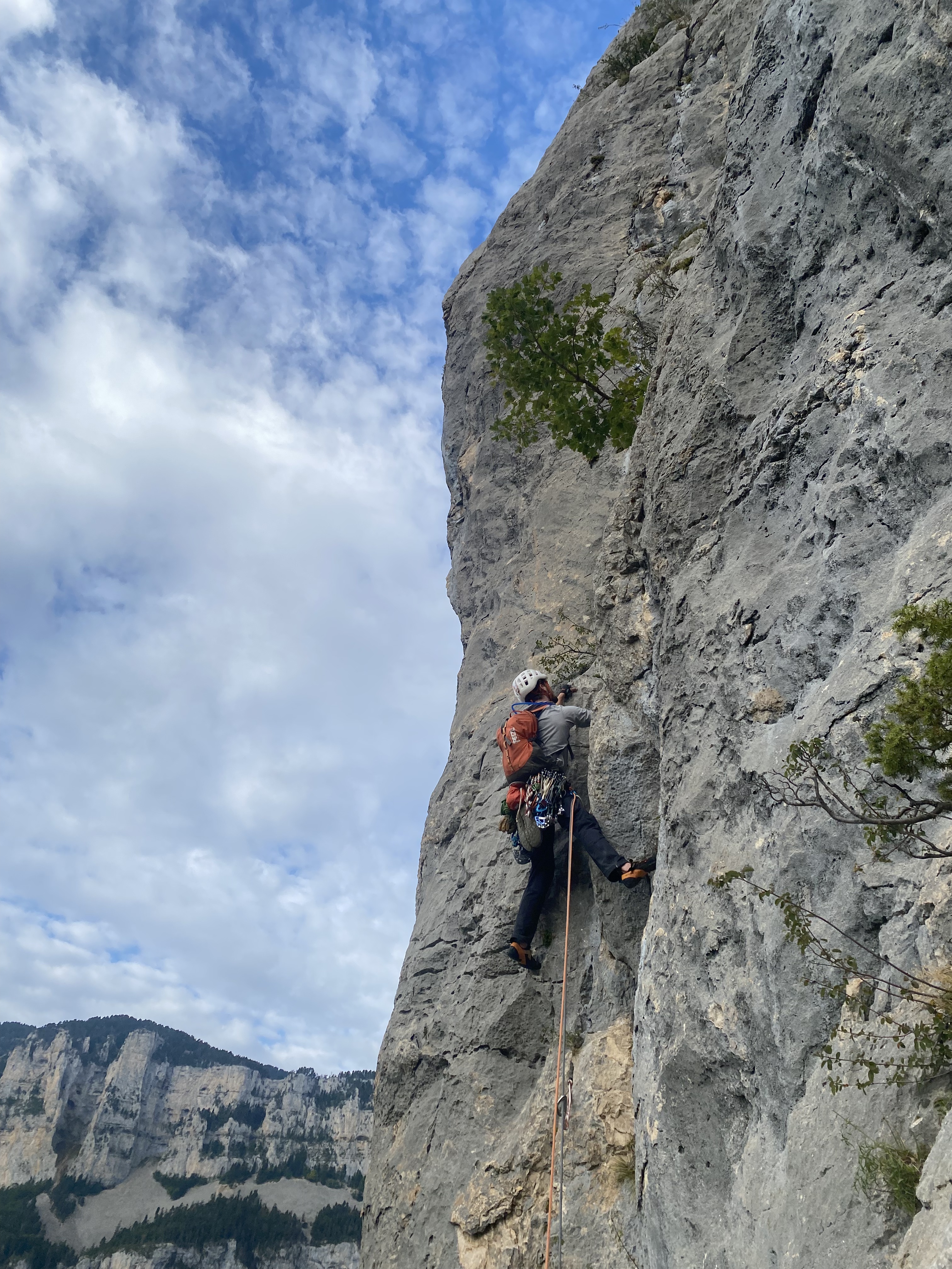 Emma, Emile en Denis combineerden twee routes: Lyonnais en Paroi Rouge. Het eerste deel, met 4e- en 5e-graads routes, klommen ze simultaan om tijd te besparen. Na twee uur hadden ze al 200 meter achter de rug. Toch voelde het voor Emile niet als zijn dag, en besloten ze het tweede deel niet te klimmen. De kracht van deze groep is dat zulke dingen besproken en geaccepteerd worden. Vadim en Kasper klommen Le levant, met een cordee franse gidsen voor hun. An en Sander klommen het begin van Quoi du neuf docteur, een route met meerdere tegenstrijdige topo’s, in de helft besloten zij om Kasper en Vadim te volgen en samen uit te toppen.