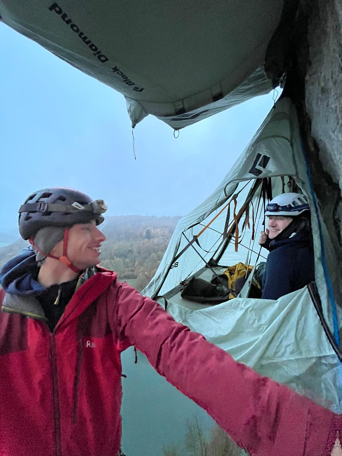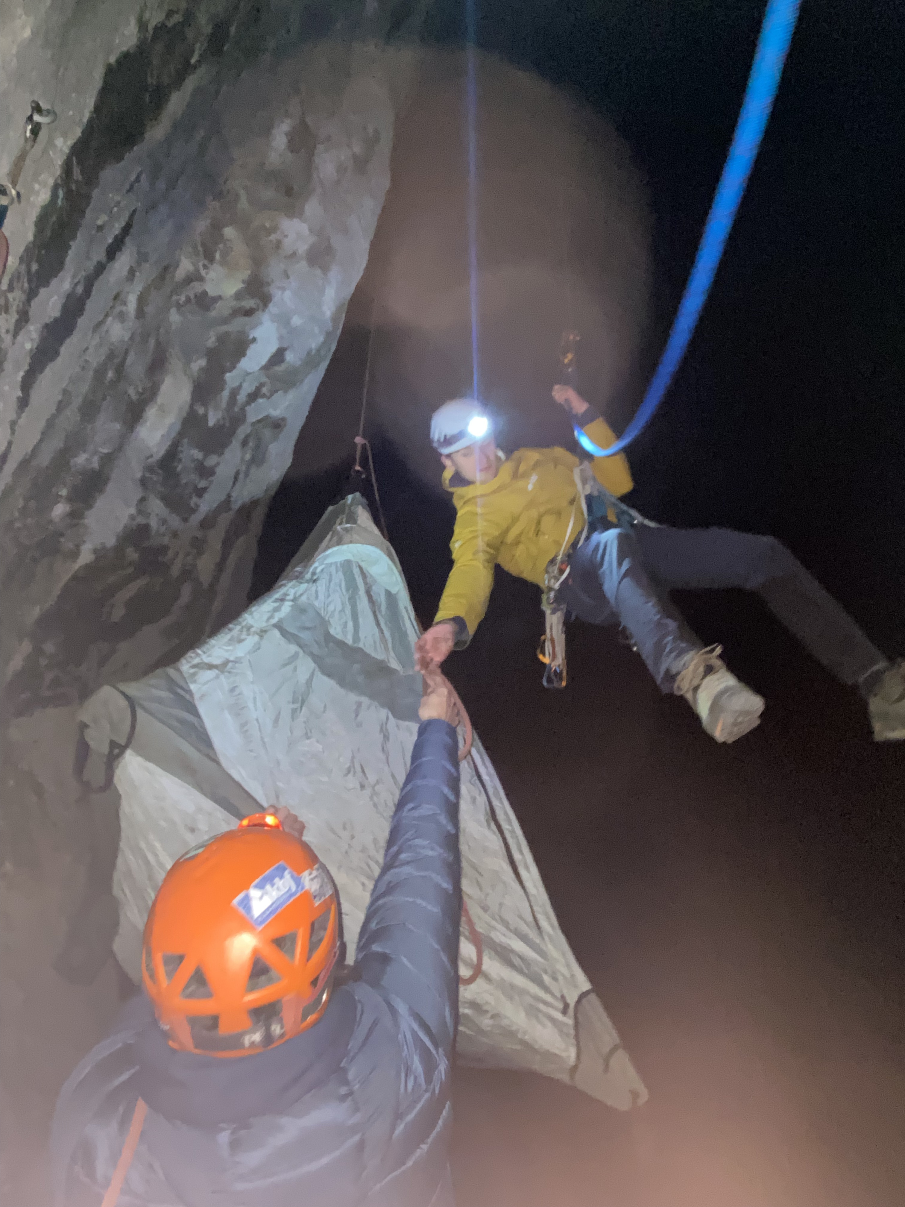 S Avonds werd er besloten om in een portaledge te slapen om de big wall ervaring compleet te maken. Eerst werden de portaledges langs de frituur opgezet om te oefenen, waarna er werd besloten om te rapellen met een opgezette portaledge omdat het toch moeilijker bleek dan verwacht om dit op te zetten. Na een uur gesukkel lukte het ons om alles te installeren en konden we eindelijk onze slaapzak in kruipen.