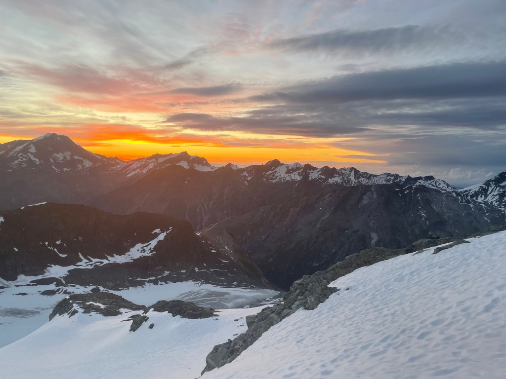 Eens de top bereikt te hebben, konden we beginnen aan de lange afdaling over de Allalingletsjer. Het was ondertussen al goed warm, waardoor de sneeuw heel zacht was en we vaak tot aan de knieën of zelfs heupen wegzakten. Fysiek en mentaal vermoeid kwamen we weer aan bij de hut, klaar om met onze kaarten en topo’s de tocht voor de volgende dag voor te bereiden. Op deze eerste gletsjertocht bleken vooral onze gezamenlijke voorbereiding en teamwork nog verbetering te kunnen gebruiken, dus dat werd onze focus. Last van hoogteziekte was ook voor sommigen een factor, het was dan ook nog maar de tweede dag waarop we boven 3000m gingen.