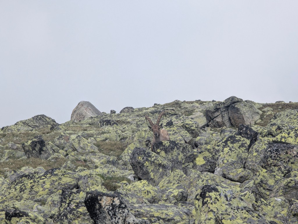 ’s Ochtends (’s nachts?) stond iedereen min of meer paraat om aan de tocht te beginnen. De eerste grofweg drie uur om tot op de graat te geraken verliepen vlotjes. Voor de graat zelf dan werd even overwogen om in te binden, maar vanwege de lage technische moeilijkheid en de grote hoeveelheid losse rots werd door bijna elke cordée besloten om dat niet te doen. Alleen Felix en Liedewij touwden in, waarna ze even later toch besloten om hier mee op te houden, inderdaad omwille van de losse rots. Intussen zagen we wel wolken vormen in de vallei, en onze weerradar begon meer en meer onheilspellende vooruitzichten te tonen. Tegen 6:00 besloten we uiteindelijk om terug te keren. Denis suggereerde nog om even verder te gaan om toch een kleine top te behalen, aangezien we in de afdaling waarschijnlijk toch nat zouden worden, maar de consensus van de groep was om zo snel mogelijk terug te keren over het losse stuk graat, omdat we dit liever niet in de regen wilden doen. Dit beslissingsproces was een bijzonder belangrijk leermoment in risico-inschatting. En hoewel we uiteindelijk maar een beetje miezer (en veel wind) te verduren kregen, was de hogere sectie van de graat de rest van de middag in de wolken verstopt. Daarbij leerden we ook om onze veiligheidsbeslissingen niet achteraf te betwijfelen (‘Wat als we toch..?’), omdat zo’n redeneringen tot gevaarlijke situaties kunnen leiden. We maakten de keuze die ons juist leek op dat moment, met de informatie die toen beschikbaar was.