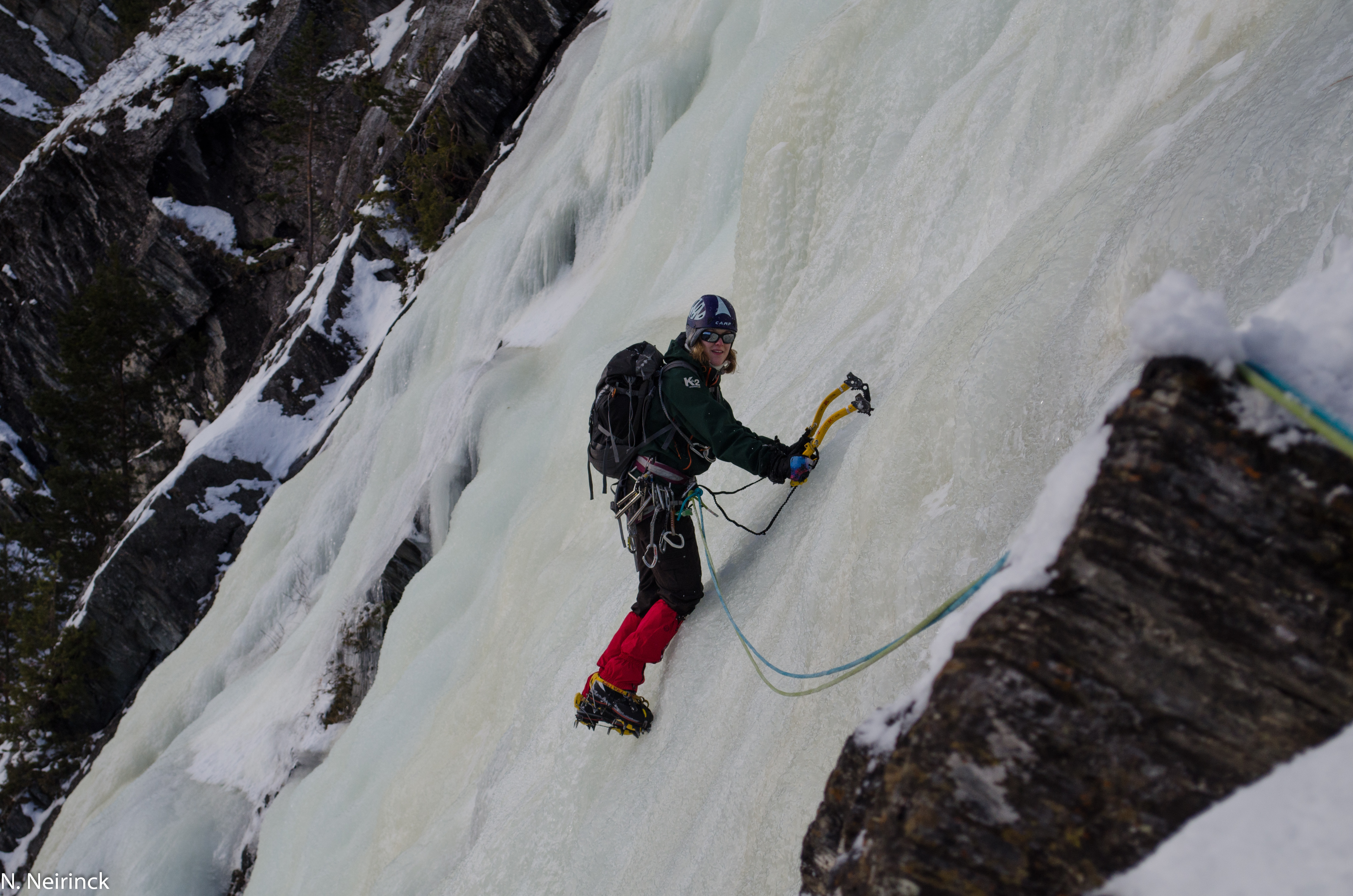Dinsdag zit de wind zuidelijker en is het wat bewolkter, wat direct voor meer ‘ambiance’ zorgt op de wand. We klimmen La Grotte, een route die ik destijds met Nicolas en Kwinten (MC4) klom. Wederom sta ik versteld van de laatste lengte die behoorlijk wat moeilijker is dan aangegeven in de topo, met haken die op sommige plaatsen 7m uit elkaar staan. Molly vloekt en zweet, en moe maar tevreden komen we boven.