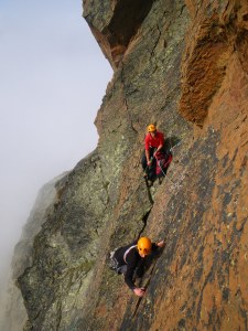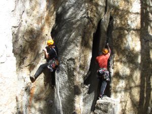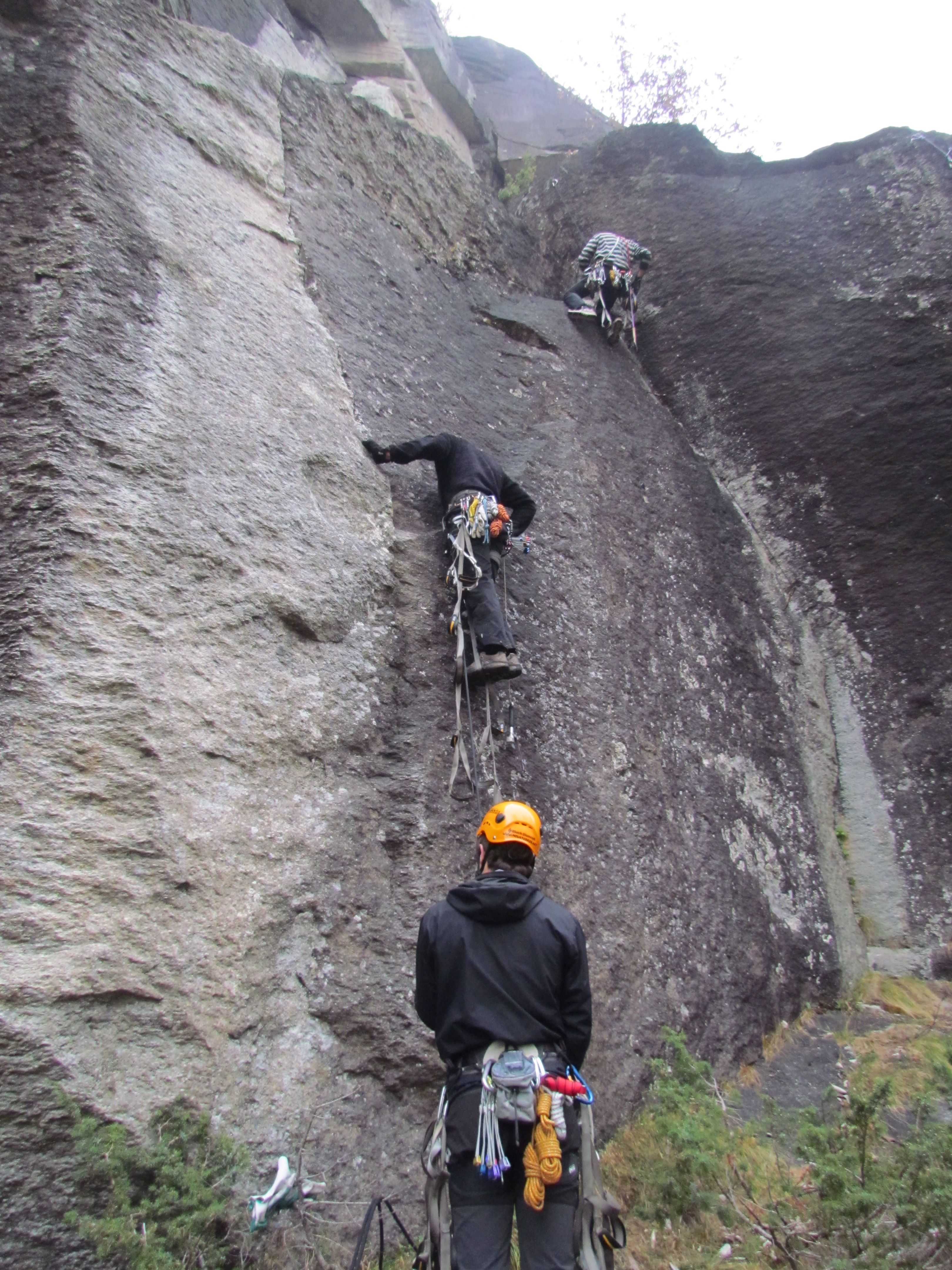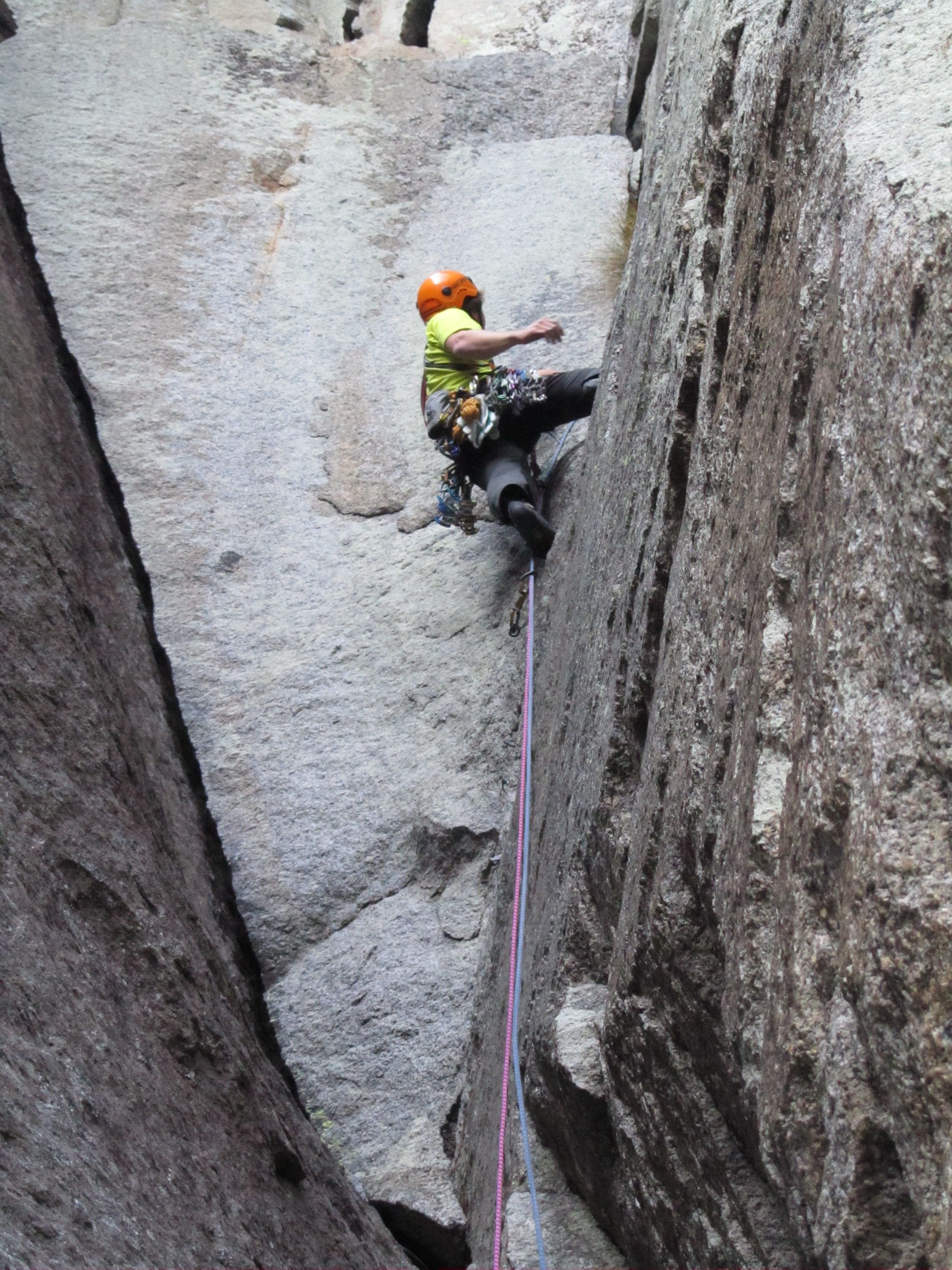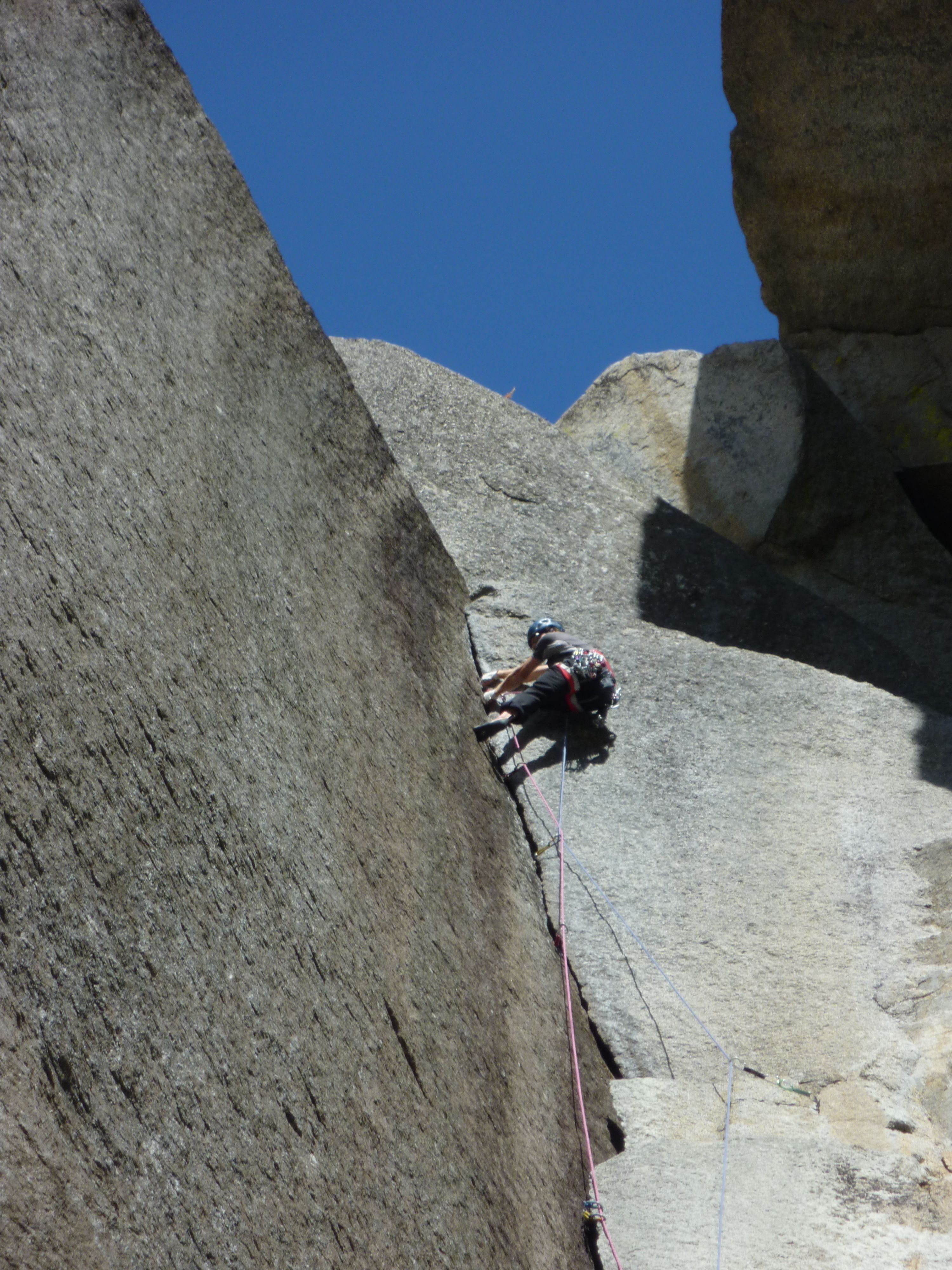 Na de drietjes van de voorbije dagen werd het tijd voor het wat hardere werk. We begonnen met Chandelle Levure (II 4+ 180m) maar omdat deze er niet echt zo zwaar bij lag en we honger hadden naar meer, lapten we er ook nog snel Il Candelabro de Coyote (II 4+/5 180m) bij. Om wat snelheid te maken besloot ik de eerste 2 lengtes aan elkaar te rijgen, dit maakte het misschien iets zwaarder maar wel veel sneller.