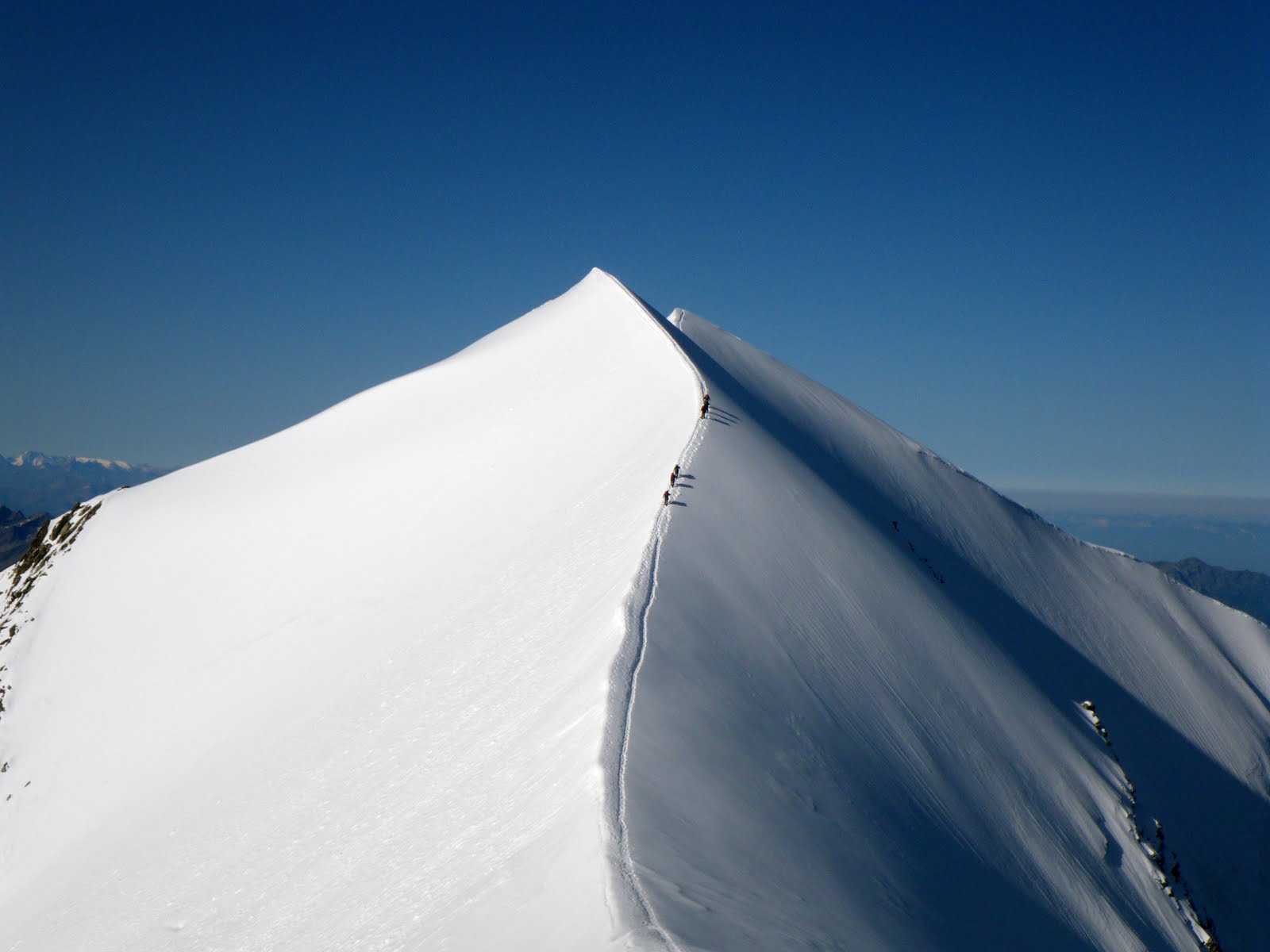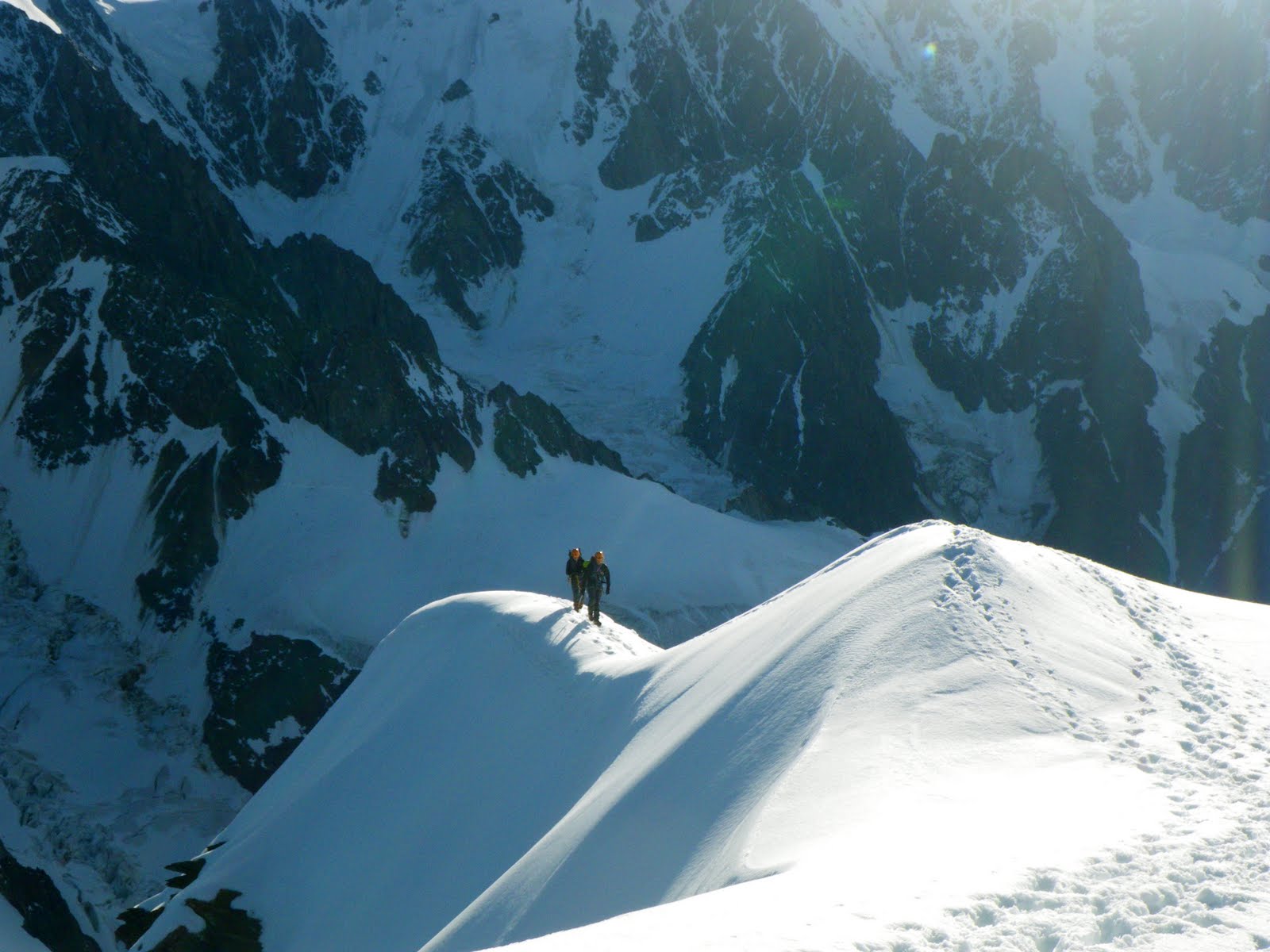 Als ik echter in het midden van de tweede lengte zit komt er juist links van ons een grootte lawine naar beneden, ik besluit zo snel mogelijk af te klimmen (wat niet simpel was in de zwaarste lengte van de route), ik sta nog geen minuut veilig aan de relais of er komt een lawine recht over onze waterval naar beneden. Zo snel als we kunnen rapellen we naar beneden, smijten alles in de rugzakken en sprinten de helling af om de veiligheid van het pad op te zoeken. Als we later in het appartement zitten horen we dat Maxime en Olivier (die twee dagen ervoor toegekomen waren) en Matti en Erik ook op de vlucht zijn moeten gaan voor de lawines.