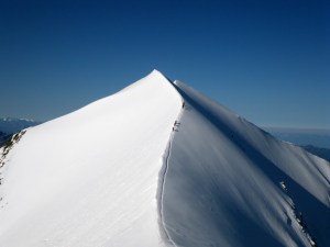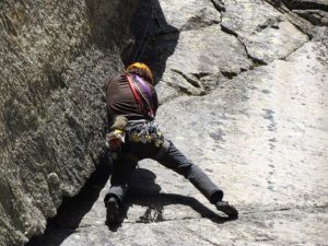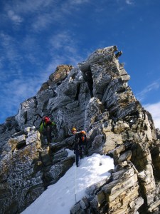 Omdat Thomas nog nooit geklommen had op ijs, besloten we rustig te beginnen en mocht hij op Cascade di Lillaz (II 3 250m) voor het eerst kennis maken met deze edele sport die wij ‘ijsklimmen’ noemen. Omdat een dagje oefenen misschien wel wat te weinig was, besloten we nog een makkelijk (maar vrij lang) watervalletje te klimmen. Il Sentiero dei Troll (II 3 350m) was een aaneenschakeling van korte steilere stukjes en lange vlakke stukken waar het heupdiep sporen was door de sneeuw. Stijn was ondertussen ziek geworden en moest enkele dagen verstek geven voor de beklimmingen.