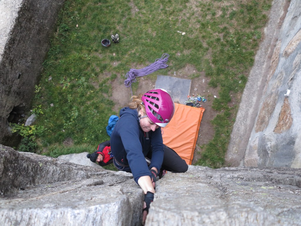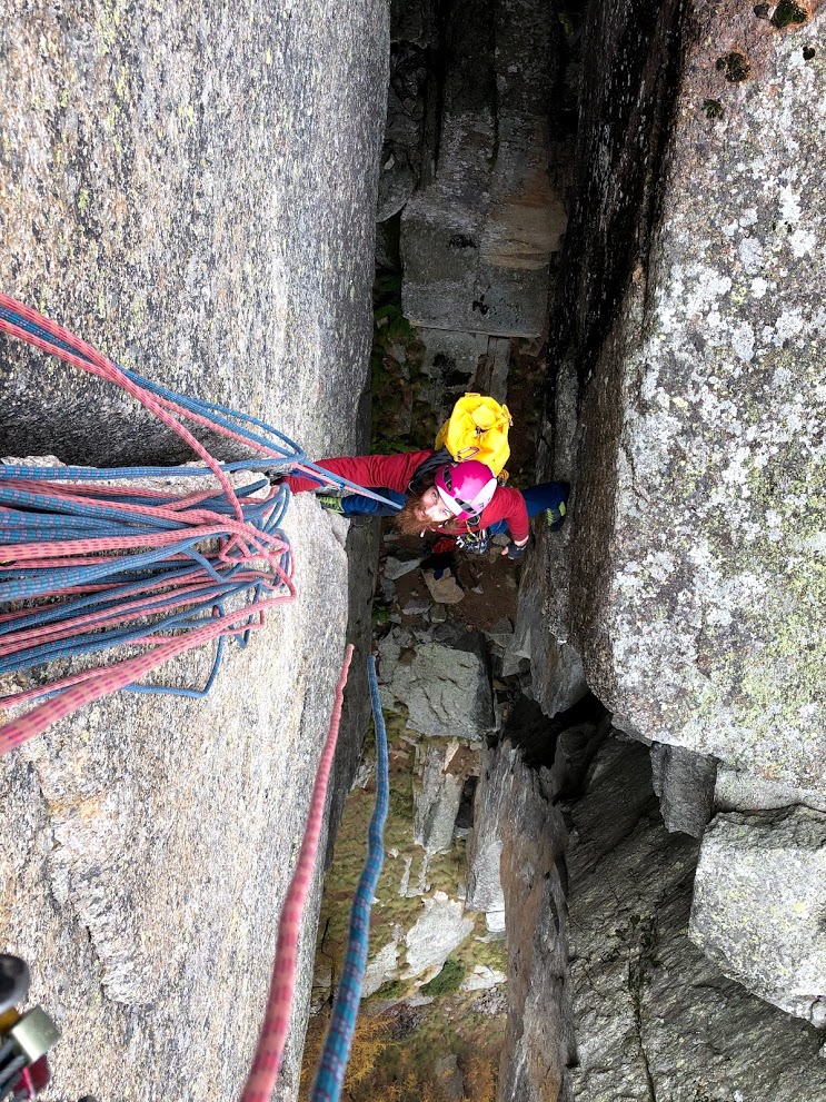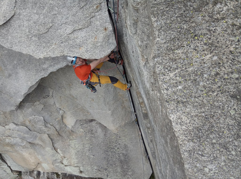 SIMON: “Rattlesnake op de Caporale was een ideale route te vervanging van de doorweekte klassieker Diedro Sanchez. In deze route kom je alles tegen van gladde dülfers tot perfecte handbarsten en van enge schoorstenen tot megasubtiel plaatklimmen. Ideaal dus om de aparte granietstijl te leren kennen.”