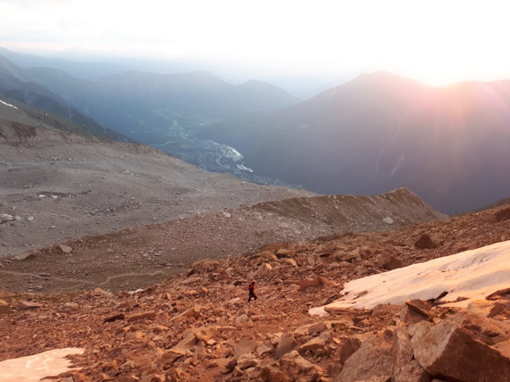 We hebben nog een dag. Vandaag besluiten we het wat rustiger aan te doen. We pakken geen alpiene start en gaan zelfs nog rustig een koffie drinken in hut de Cosmique. Na onze koffie gaan we verder naar ârete Cosmique. Een gemakkelijkere beklimming die niet lang is en eindigt in het liftstation. Het is een rustige maar mooie beklimming. Ideaal om een weekend mee af te sluiten. Iedereen tevreden keren we terug naar Chamonix om verder te dromen naar het volgende avontuur.