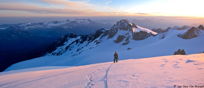 Nu ja, buiten de Aiguille du Midi waren er nog steeds geen liften open, laat staan dat er ergens iets in conditie zou liggen. Enkel de Piramide de Tacul was enigzins ijzig genoeg. Niet direct onze eerste keuze, maar beter iets klimmen dan niets. Het is trouwens nog vroeg in het seizoen, plenty more time to climb…