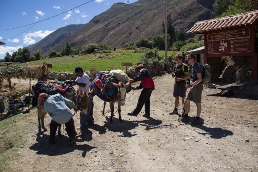 Ezels vol laden voor de Santa Cruz trek naar Alpamayo Basecamp