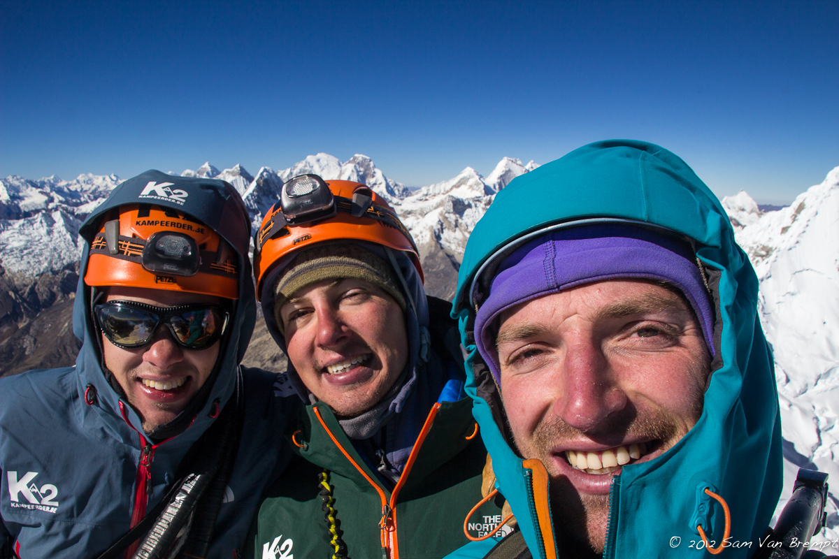 Maxime, Nelson en Sam op top van Alpamayo