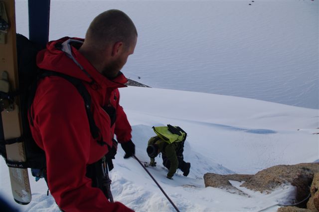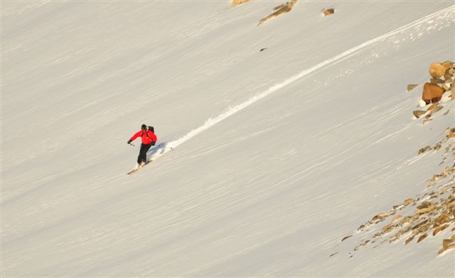 Nicolas en ik bouwen nog een grote cairn (steenman), zodat de volgende deze rappel wél makkelijk kan vinden. Maar het blijkt allemaal wel te kloppen, de volgende relais is die met de spit en de piton, waarna we in de steile zuidoostwand vlot in 7 rappels weer naar de start van onze route geraken. Als we over de bovenste twee lengtes rappelen, ben ik blij dat Lander en ik hier drie weken geleden niet verder geklommen hebben. Op zich een mooie lijn door grote hoekversnijdingen, maar tjokvol gras en mos. Na een half uurtje terugwandelen en onze Tyrolean, zijn we om 1700Hr terug in BC na een bijzonder vlotte beklimming. Blij dat we dat hoofdstuk ook goed hebben kunnen afsluiten.