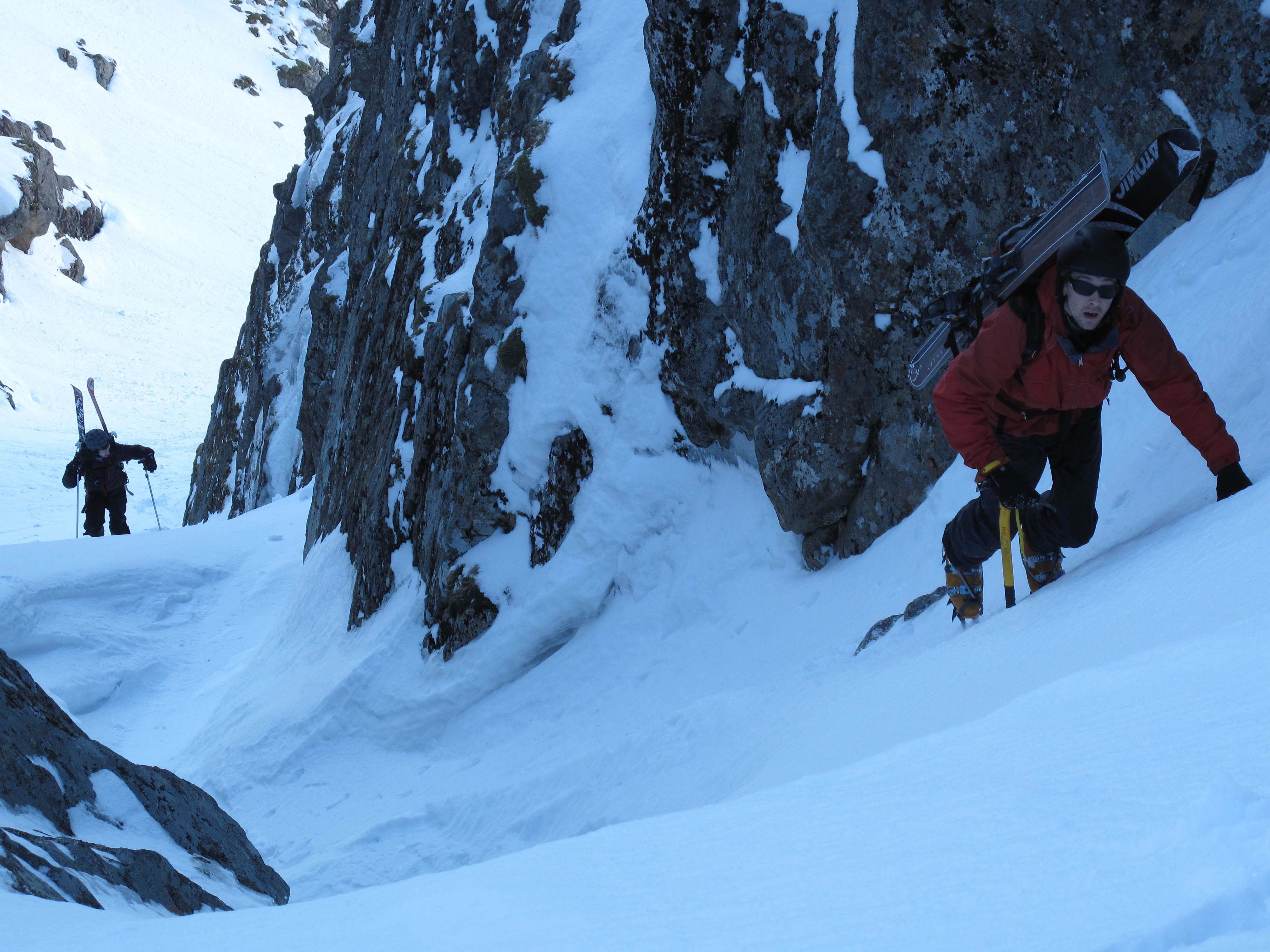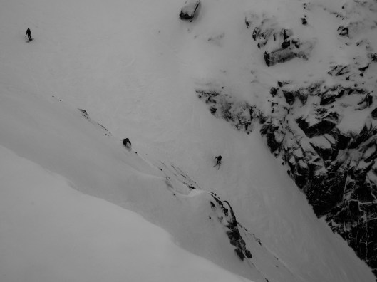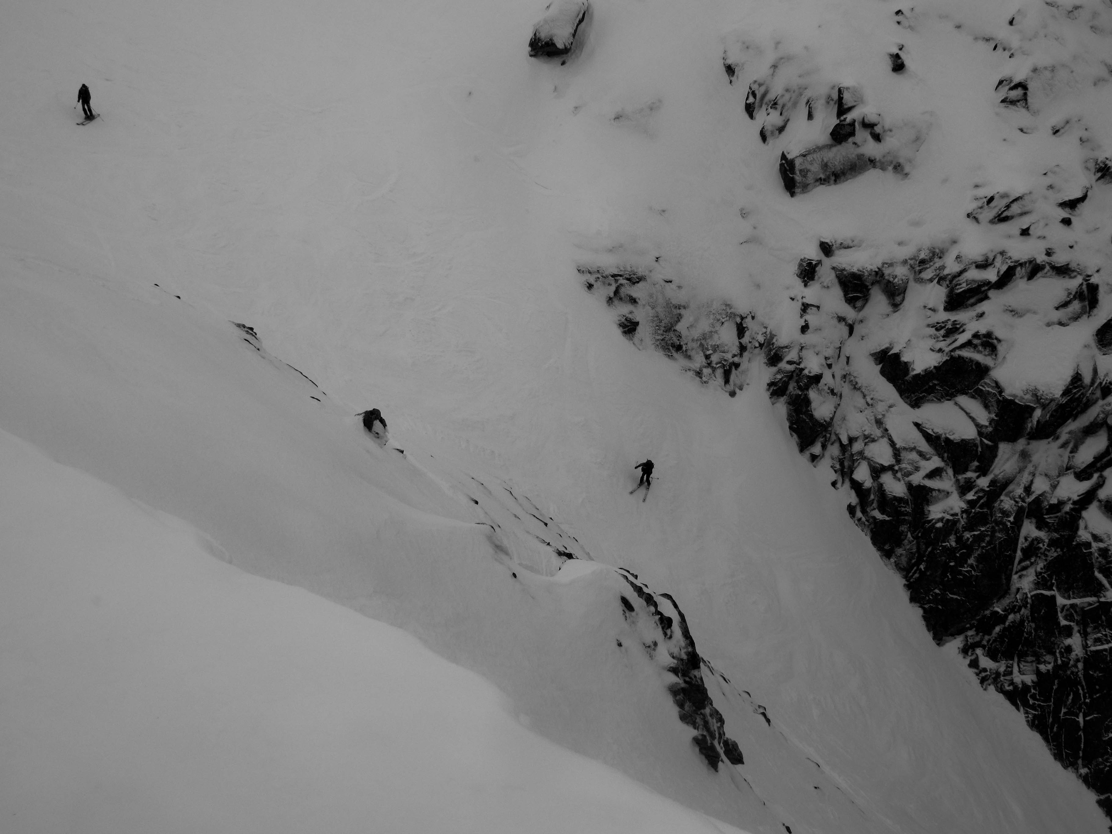 De bovenste 900hm waren stijl, stabiel en vooral fun, maar helaas moesten we helemaal tot in de vallei skien wegens geen escapemogelijkheid halverwege. Veel te hoog lawinegevaar en kutsneeuw zorgde ervoor dat het nog spannend werd met enkele voorvallen die ik liefst nooit meer wil meemaken… 2 grote natte sneeuwlawines braken door ons los, gelukkig zonder erg. Weer een lesje bijgeleerd…