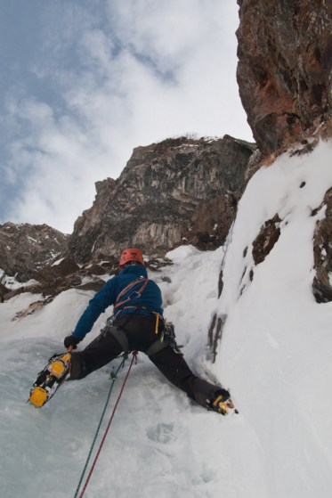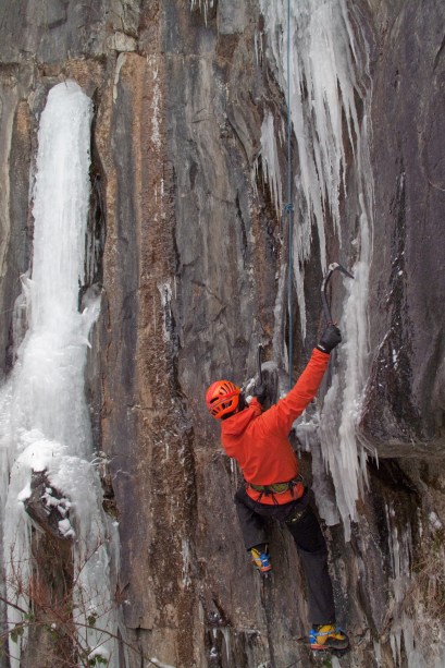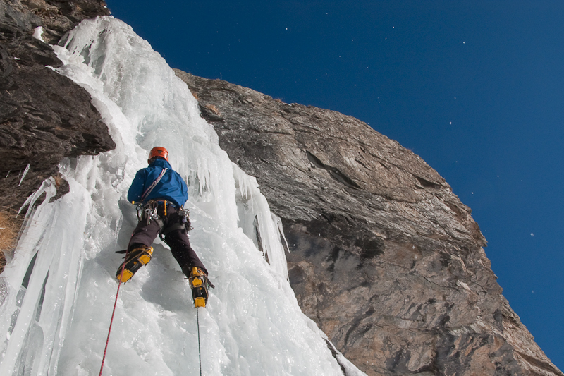 Gevolgd door wat stevigers, de beroemde Spada nel Roccia (50m, I 5), een uiterst esthetische zuil van ijs, letterlijk “het zwaard in de rots”