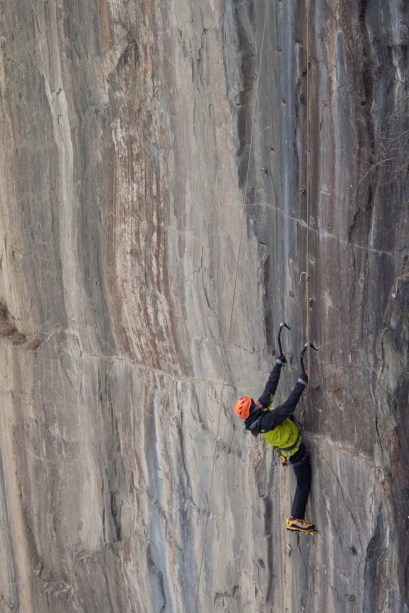 In het geval van Repulsion kan ik ze me moeilijk mooier voorstellen in een dikke laag ijs. Ja ik weet best, tenzij je een overhangende drytoolexpert bent geraak je niet door een lengte waar normaal een vrijstaande sigaar staat. Maar de goulotteachtige watervallen en echte alpiene goulotten. Die moeten niet perse dik liggen. Neem een setje klemblokken, enkele friends, desnoods pitons mee. Zelf heb ik tijdens het klimmen nog nooit pitons moeten slagen, enkel voor een rapel. Maar toch heb ik al vaak gedacht hier slaag ik beter een piton dan die klemblok die er waarschijnlijk terug uitvliegt.