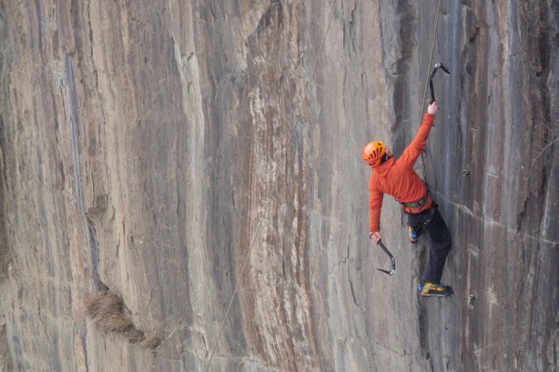 Een trainingsessie van Markus Bendler, regerend wereldkampioen ijsklimmen. Net wat ik nodig had om weer gemotiveerd te raken.
