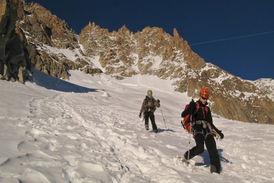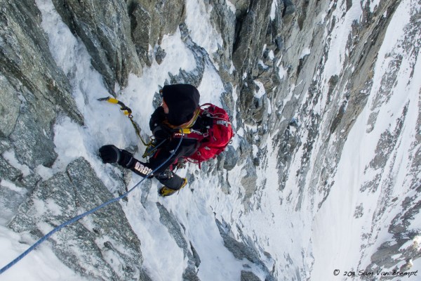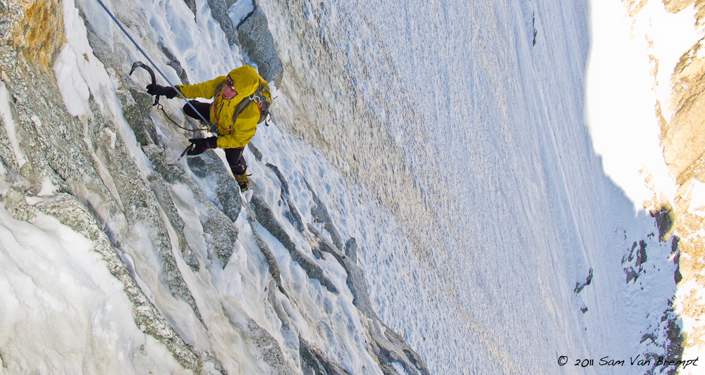 De condities in Chamonix zijn op dit moment verre van ideaal. Vele goulotten liggen heel droog, andere hebben een onoverwinbare rimaye en voor de aanloop zijn bijna altijd raketten of ski’s nodig. Nog even geduld dus…