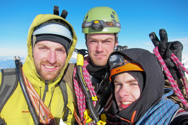 Na een 11 u tot de top rest ons nog een 5u durende afdaling via rappels en een ploetertocht over de papperige gletsjer tot de Couvercle.