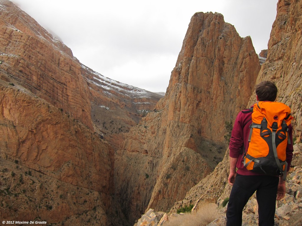 De volgende dag had ik met Max gepland om “Canyon Apache” ED- 300m 6c te klimmen. Het was onze laatste klimdag. Helaas is dat er niet meer van gekomen : wederom zaten de natuurelementen tegen en stonden we op in een sneeuwtapijtje. Dat was de voorbode van een redelijk onderhoudende terugreis, ook spannend! Aangekomen in Marrakech kwamen we in het meest slechte hotel ooit : het regende er letterlijk binnen, gelukkig was het wel goedkoop, misschien te goedkoop… achja!
