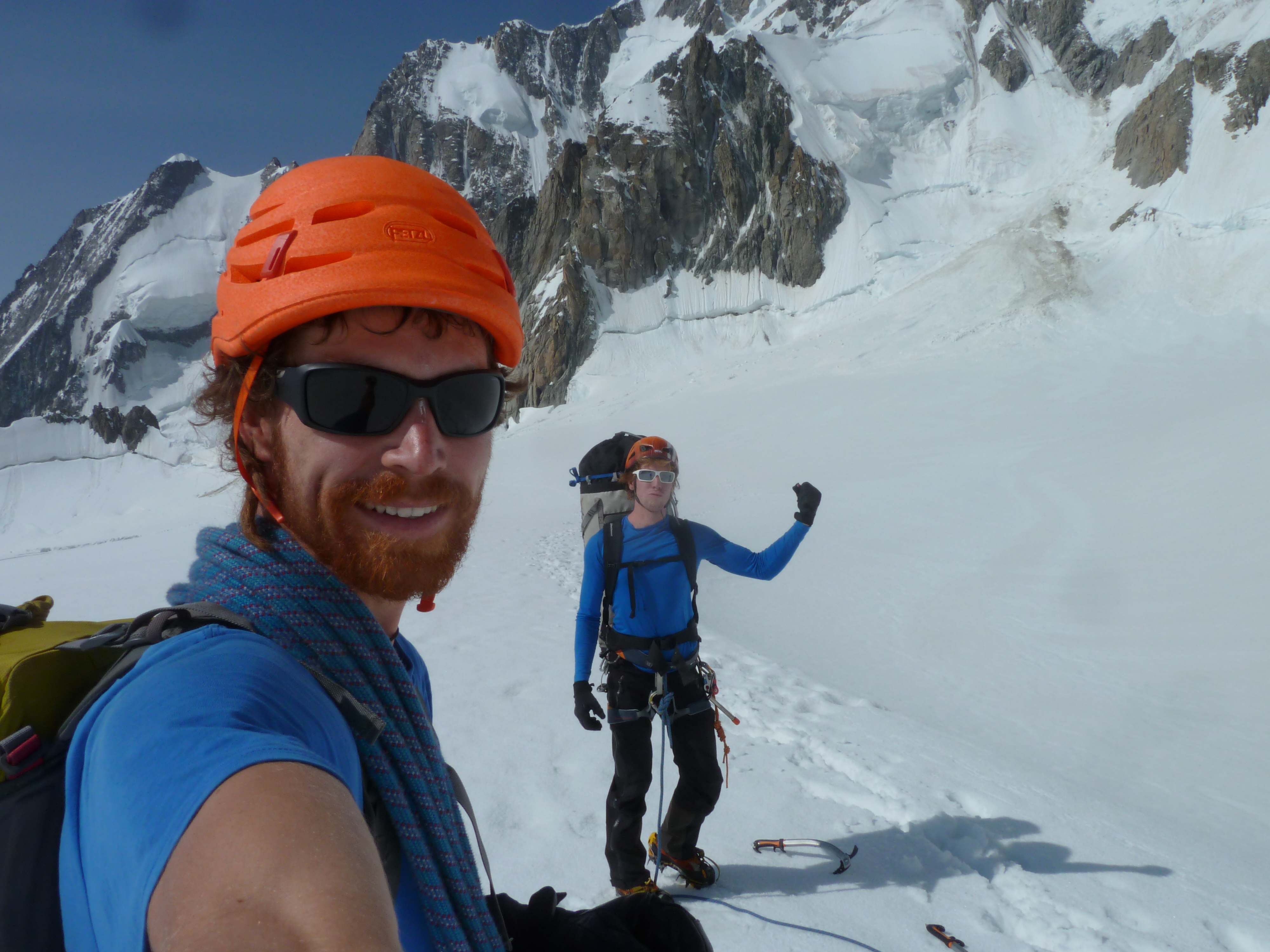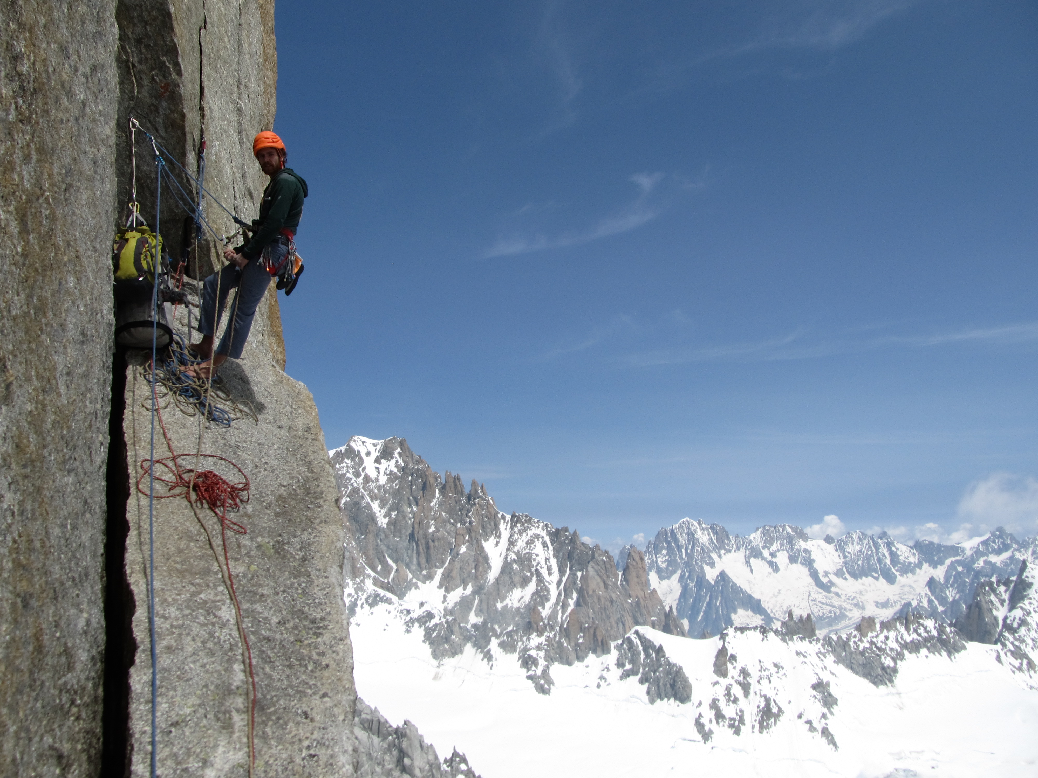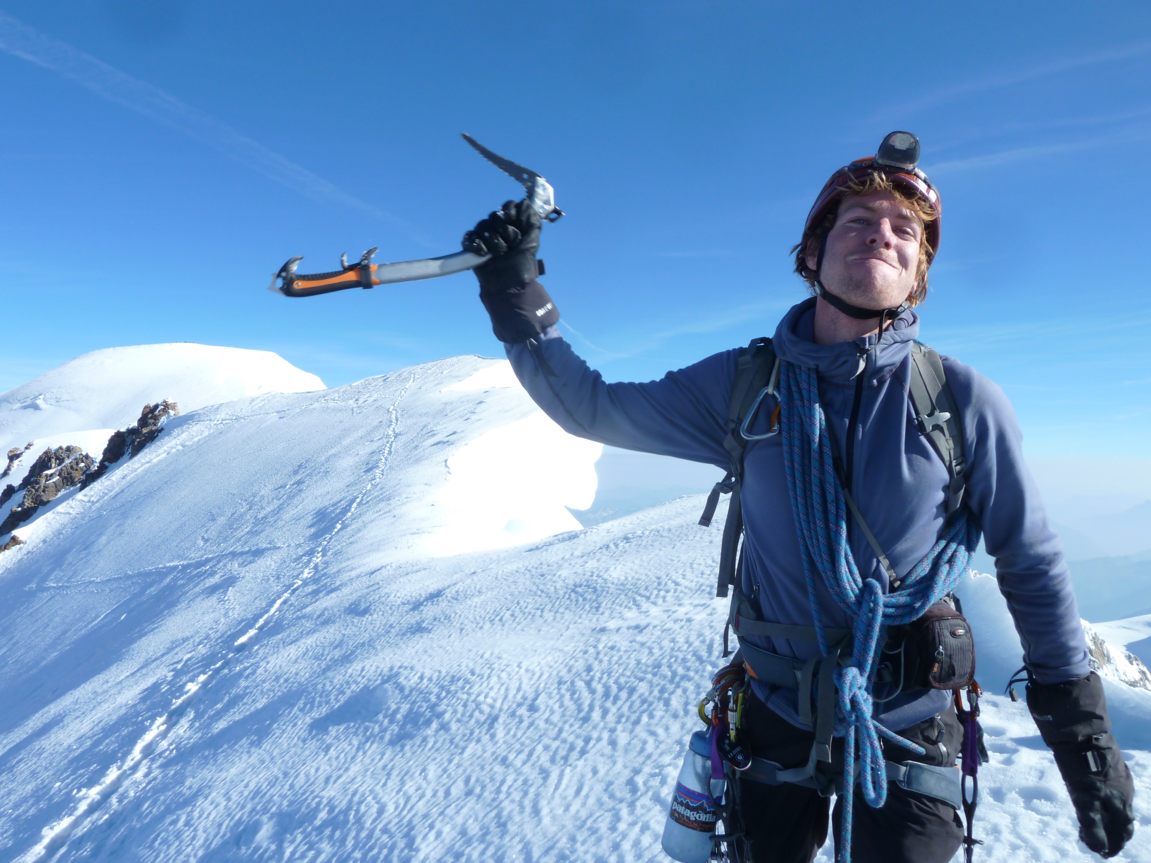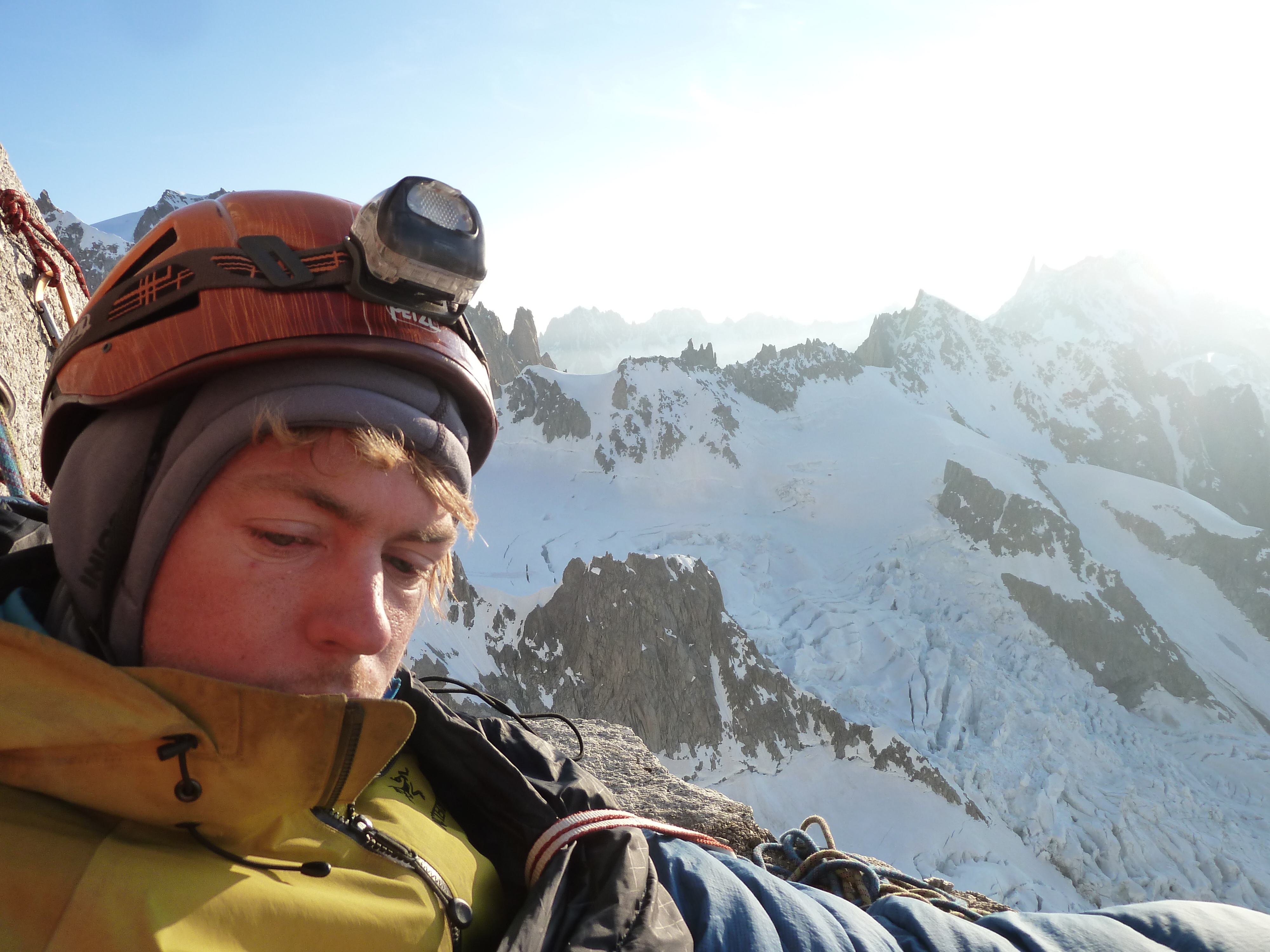 Het is 5 uur s’ochtends. We worden wakker van de eerste zonestralen die over de Arrête de Peuterey recht in ons gezicht schijnen. Ons lichaam is uitgeput na 2 dagen klimmen en vooral van een ganse nacht gekneld te hebben gelegen tussen enkele losse blokken. De sneeuwgraat die voor ons ligt is lang en stijl, gisteren moesten we terugkeren door slechte sneeuwcondities, maar vandaag gaan we voor het ultieme doel : De Mont Blanc !