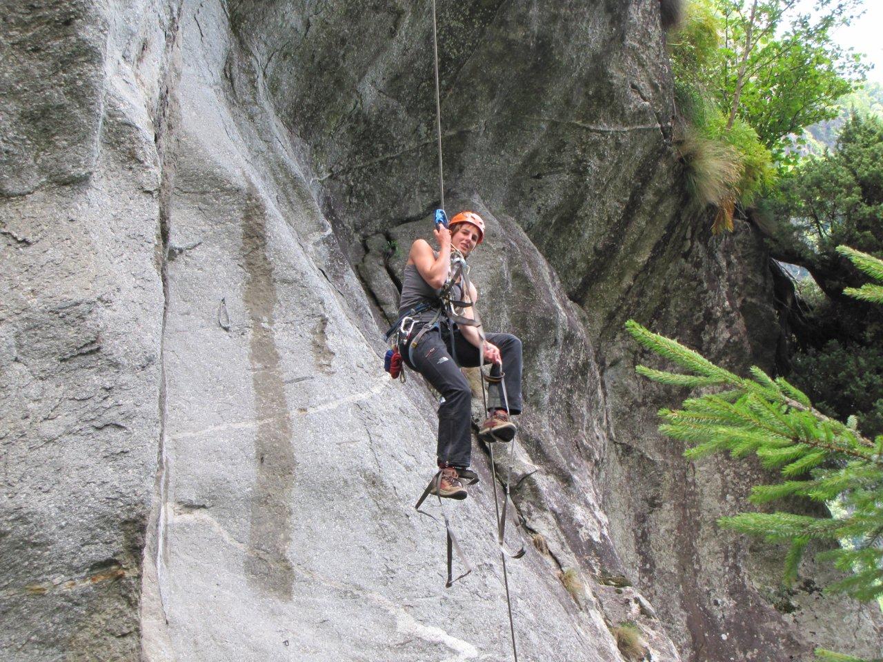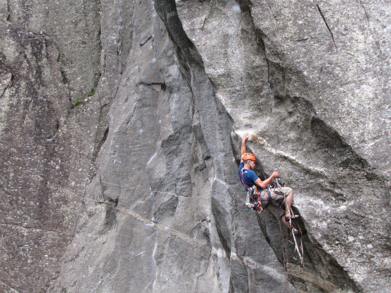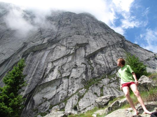 Dit weekend zullen alle deelnemers van MC3 weer veilig thuis zijn, na een vette maand in de alpen. Op 21 juli ging de MC Bigwallstage van start in het Italiaanse Val di Mello, even ten noorden van het lago di Como (de geboortestreek van Ricardo Cassin, nvdr). Het weer was aanvankelijk niet bijster goed, maar één van de voordelen van artifklimmen is dat het kan in slecht weer, maar vooral ook onder grote overhangen. We begonnen de stage dan ook met een paar dagen techniektraining op de Sasso Remenno (de grootste boulder van Europa, 45m hoog en zonder crashpad) in soms erg regenachtig weer.