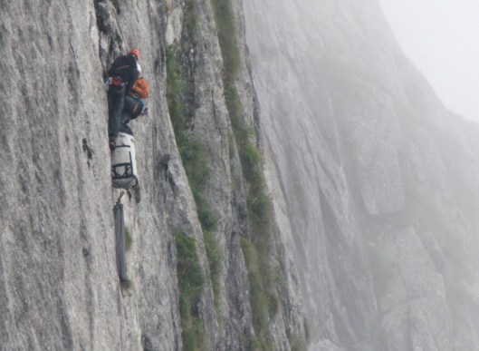 Bij bigwallklimmen komen een hoop touwtechnieken kijken. Artificieel voorklimmen kan op zich al erg spannend zijn, maar de overgang van artif naar vrij klimmen is vaak nog veel spannender. Eens je een relais opgebouwd hebt, volgt voor de voorklimmer de aangename en rustgevende job van het haulen (de haulbag omhoog takelen) en voor de naklimmer het omhoogklimmen langs het gefixeerde touw. Ook hier kan de fun niet op, vooral in overhangen en traverses. Bijkomende technieken zijn het opzetten van een hangend bivak, het correct fitten van een haulbag en het overbruggen van traverses met haulbag. Maar na twee dagen techniektraining zitten de hoofden vol met termen als bodyhauling, fifi’s en skyhooks. Tijd voor wat klimwerk.