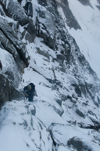 Bij bigwallklimmen komen een hoop touwtechnieken kijken. Artificieel voorklimmen kan op zich al erg spannend zijn, maar de overgang van artif naar vrij klimmen is vaak nog veel spannender. Eens je een relais opgebouwd hebt, volgt voor de voorklimmer de aangename en rustgevende job van het haulen (de haulbag omhoog takelen) en voor de naklimmer het omhoogklimmen langs het gefixeerde touw. Ook hier kan de fun niet op, vooral in overhangen en traverses. Bijkomende technieken zijn het opzetten van een hangend bivak, het correct fitten van een haulbag en het overbruggen van traverses met haulbag. Maar na twee dagen techniektraining zitten de hoofden vol met termen als bodyhauling, fifi’s en skyhooks. Tijd voor wat klimwerk.