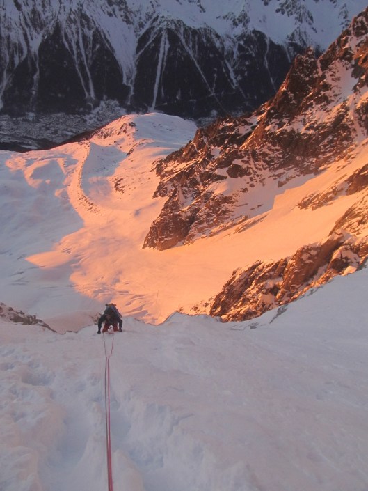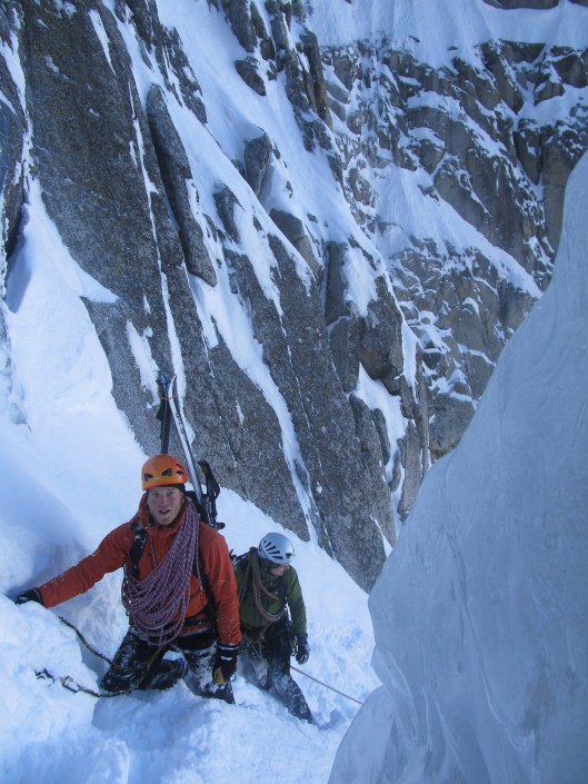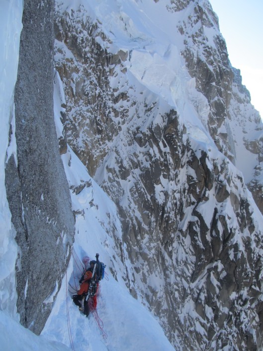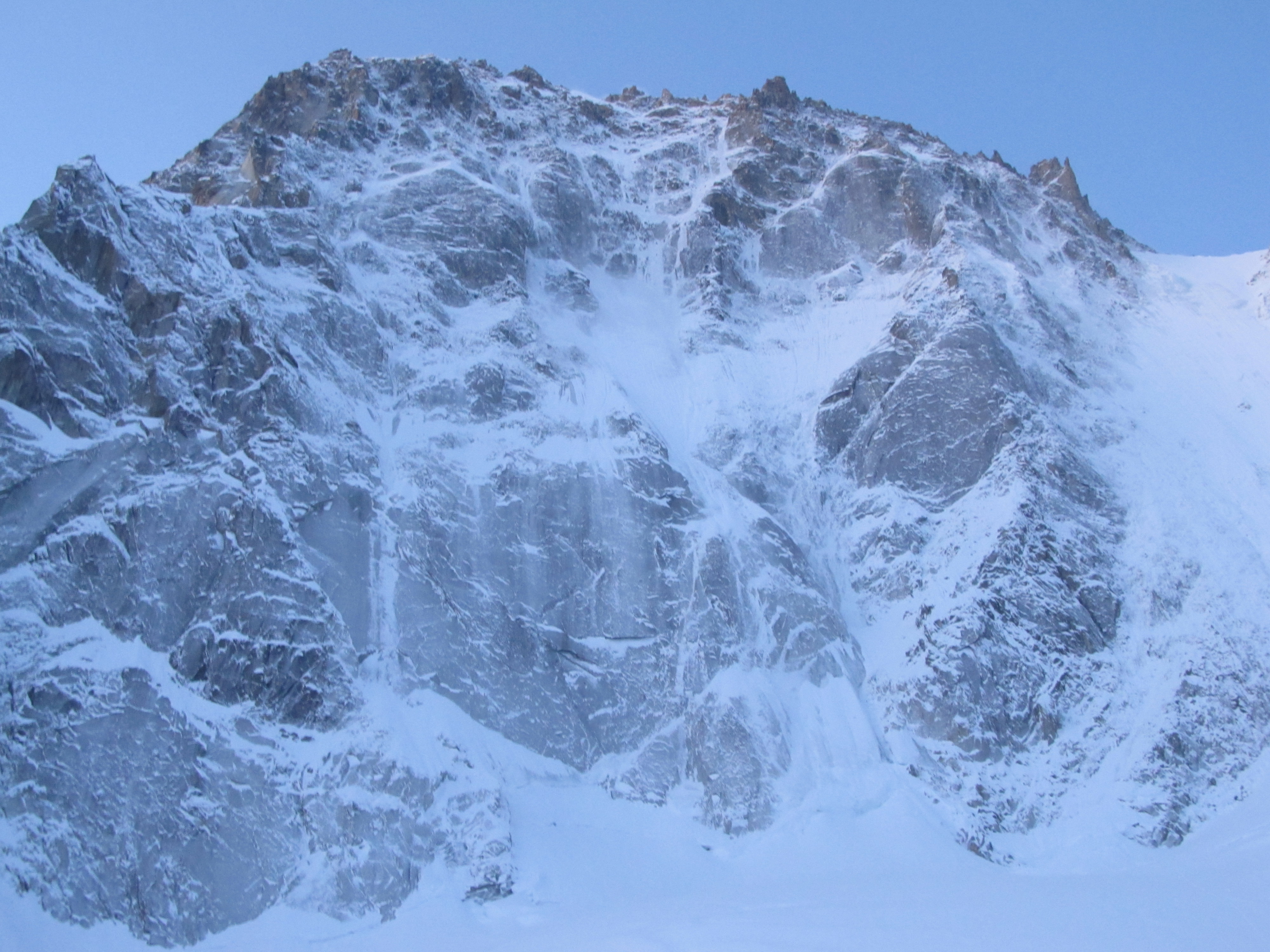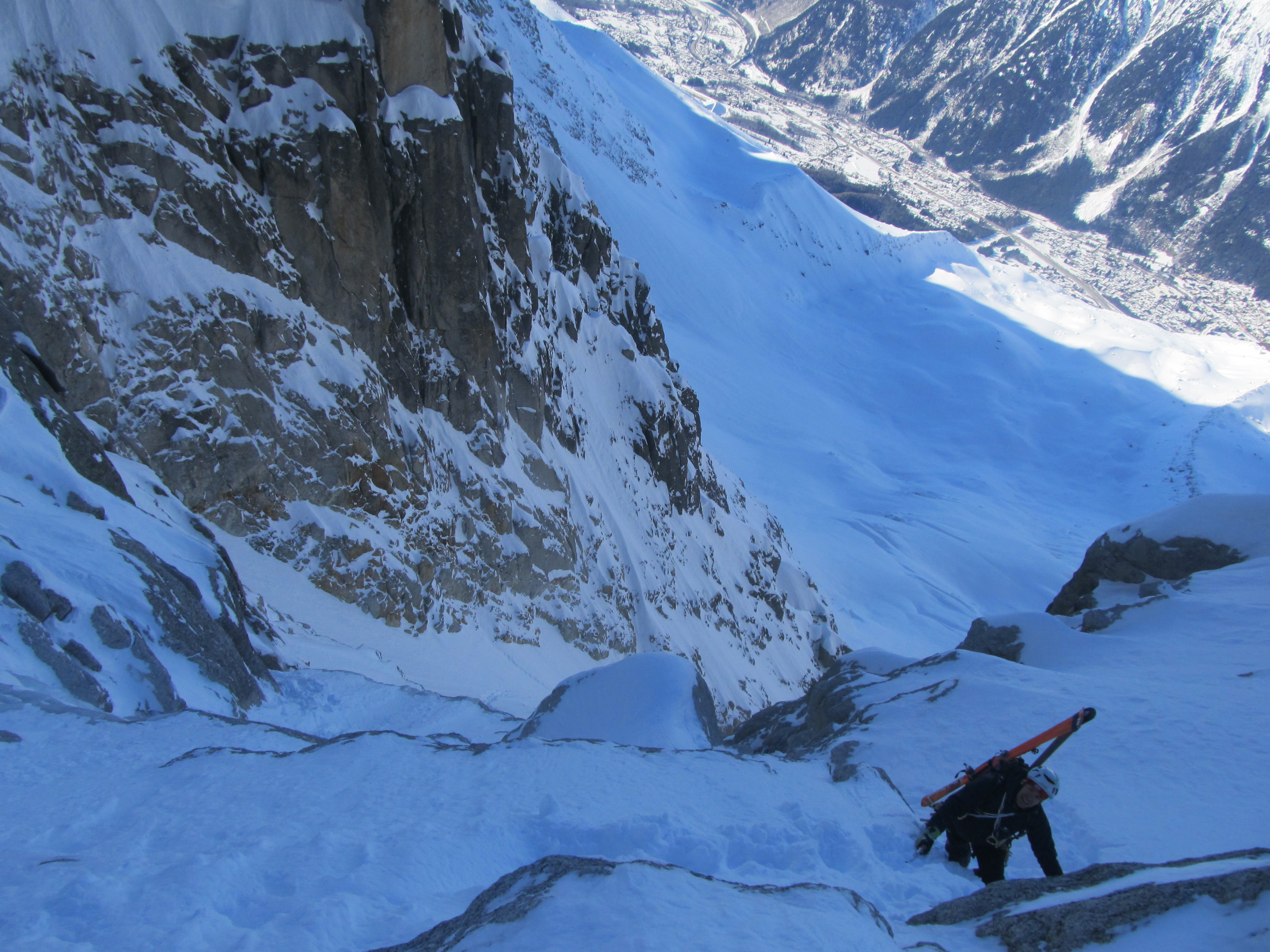 De condities in Chamonix zijn op dit moment verre van ideaal. Vele goulotten liggen heel droog, andere hebben een onoverwinbare rimaye en voor de aanloop zijn bijna altijd raketten of ski’s nodig. Nog even geduld dus…