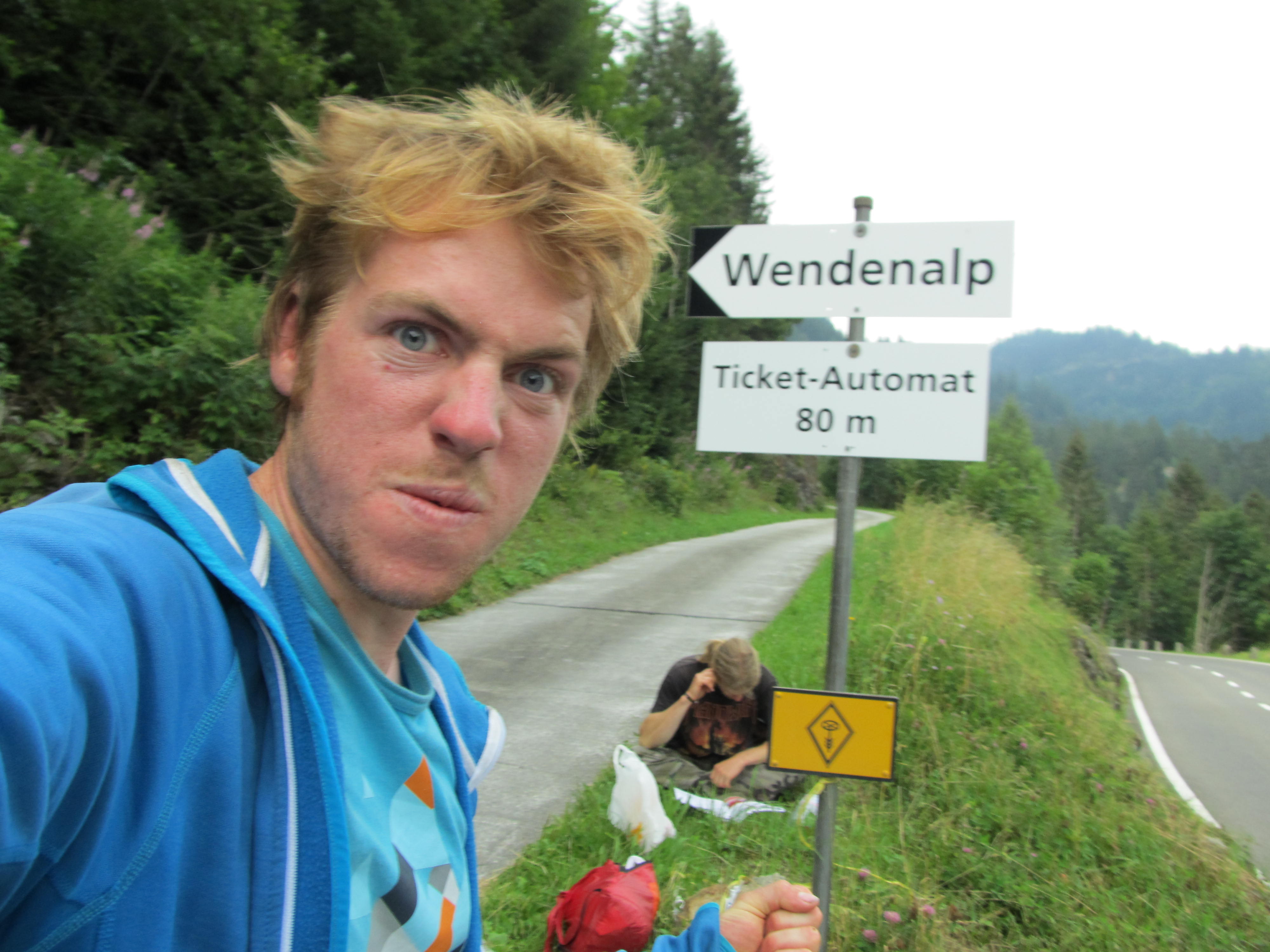 Vorige keer in Wendenstöcke was gebleken dat Zwitserland de te mijden plek is voor een student. Duur eten en slechts een zeer kleine fractie van de mensen is vriendelijk genoeg om lifters mee te pakken.”Ach Zwitserland daar kom ik niet meer binnen voordat ik een auto en werk heb” Ik hoor het mij nog zo zeggen. Toch stonden we deze maandag weer in “le Chatelard” met de duim omhoog en wachtend op iemand die richting wendenstöcke reed. De nieuwe topo van versand sud : Arrampicare in Svizzera had ons overtuigd om toch terug te keren. De eerste lift ging vlot en we werden afgezet in Martigny. Kreunend onder een hitte van 30 graden verstreken de uren. Toen we om 2 uur in de namiddag nog steeds niet weg waren had de moraal al een dieptepunt bereikt. Het besluit was genomen : gewoon terugkeren en in de Savoie iets gaan klimmen!